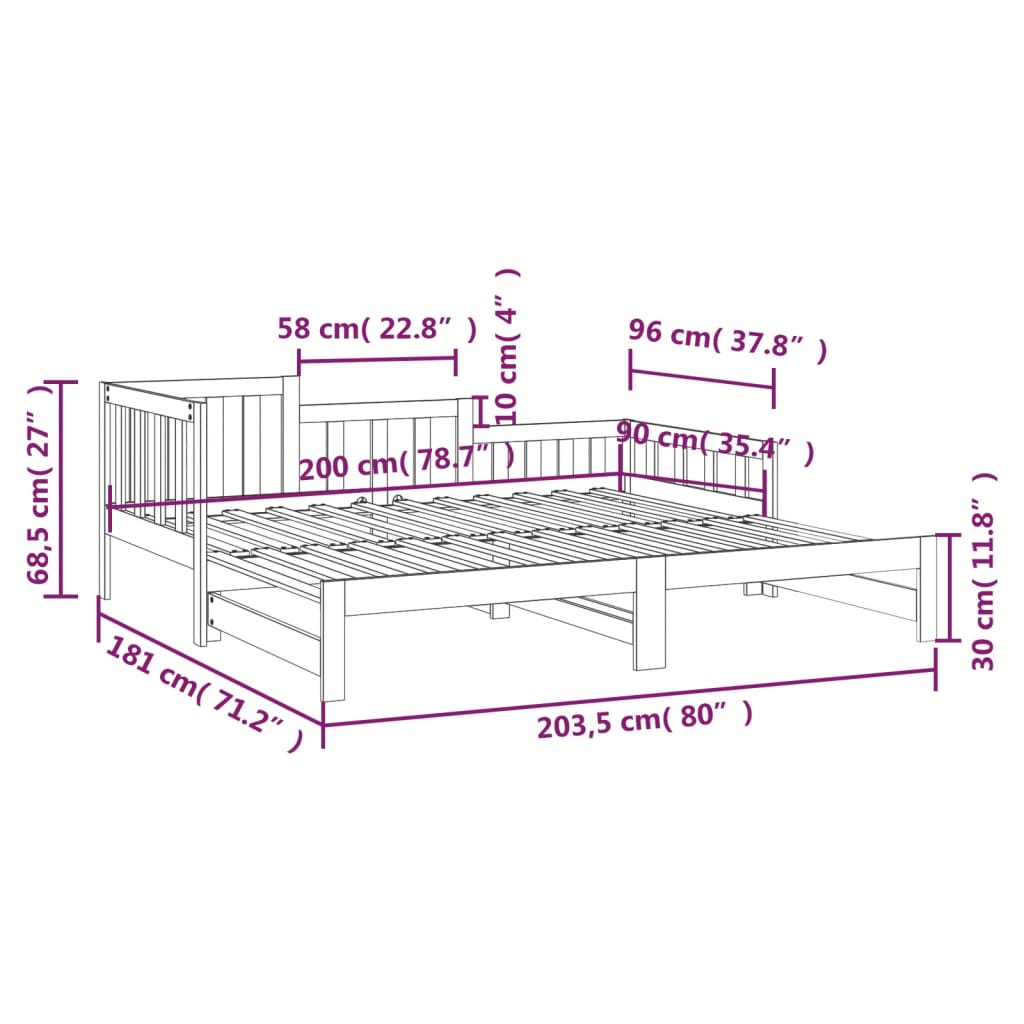 • Vuodesohvan mitat (suljettuna): 203,5 x 96 x 68,5 cm (P x L x K)