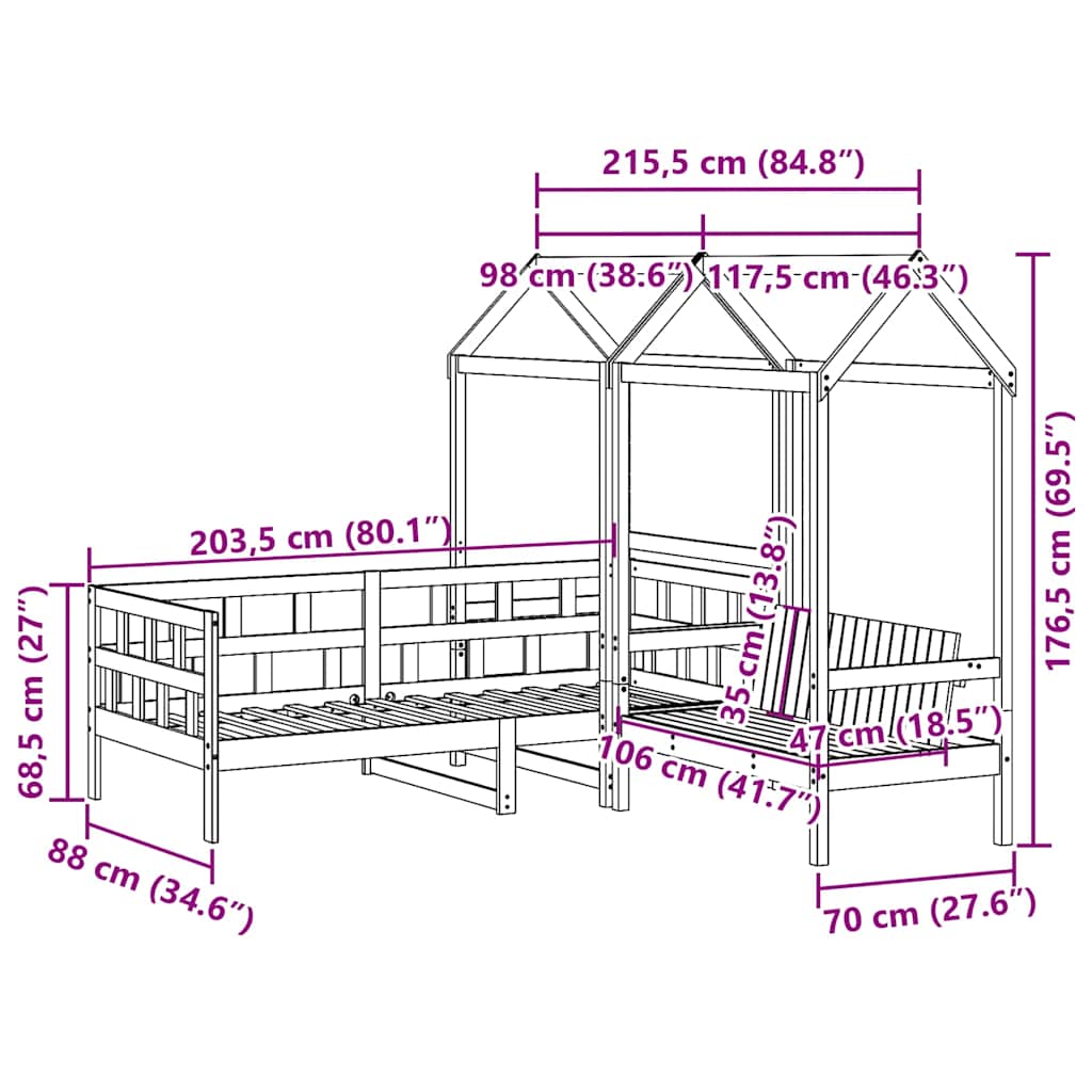 Sohvasänkysarja katoksella vahanruskea 80×200 cm täysi mänty