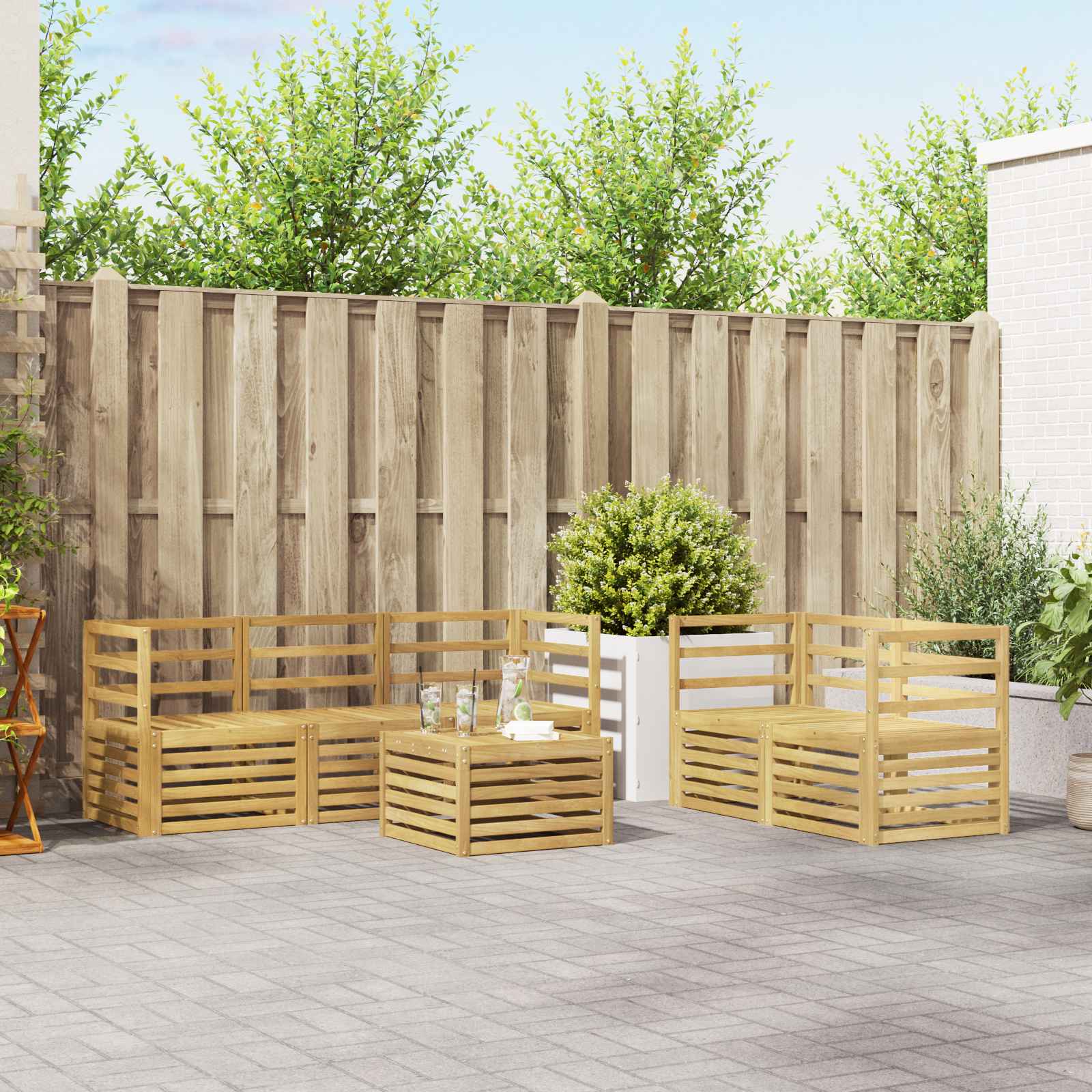 Ulkokalustesetti yhdistää tyylin ja toimivuuden, luoden näyttävän keskipisteen puutarhaan tai terassille. Modernissa designissa on kauniit linjat ja yksinkertaiset yksityiskohdat, jotka korostavat eleganssia, ja se tukee rentoutumista ulkona sekä sosiaalista yhdessäoloa. Koko setti on valmistettu kestävästä akaasiapuusta, mikä varmistaa pitkän käyttöiän ja visuaalisen vetovoiman – täydellinen valinta niille, jotka haluavat käytännöllisiä ja hienostuneita ulkokalusteita.