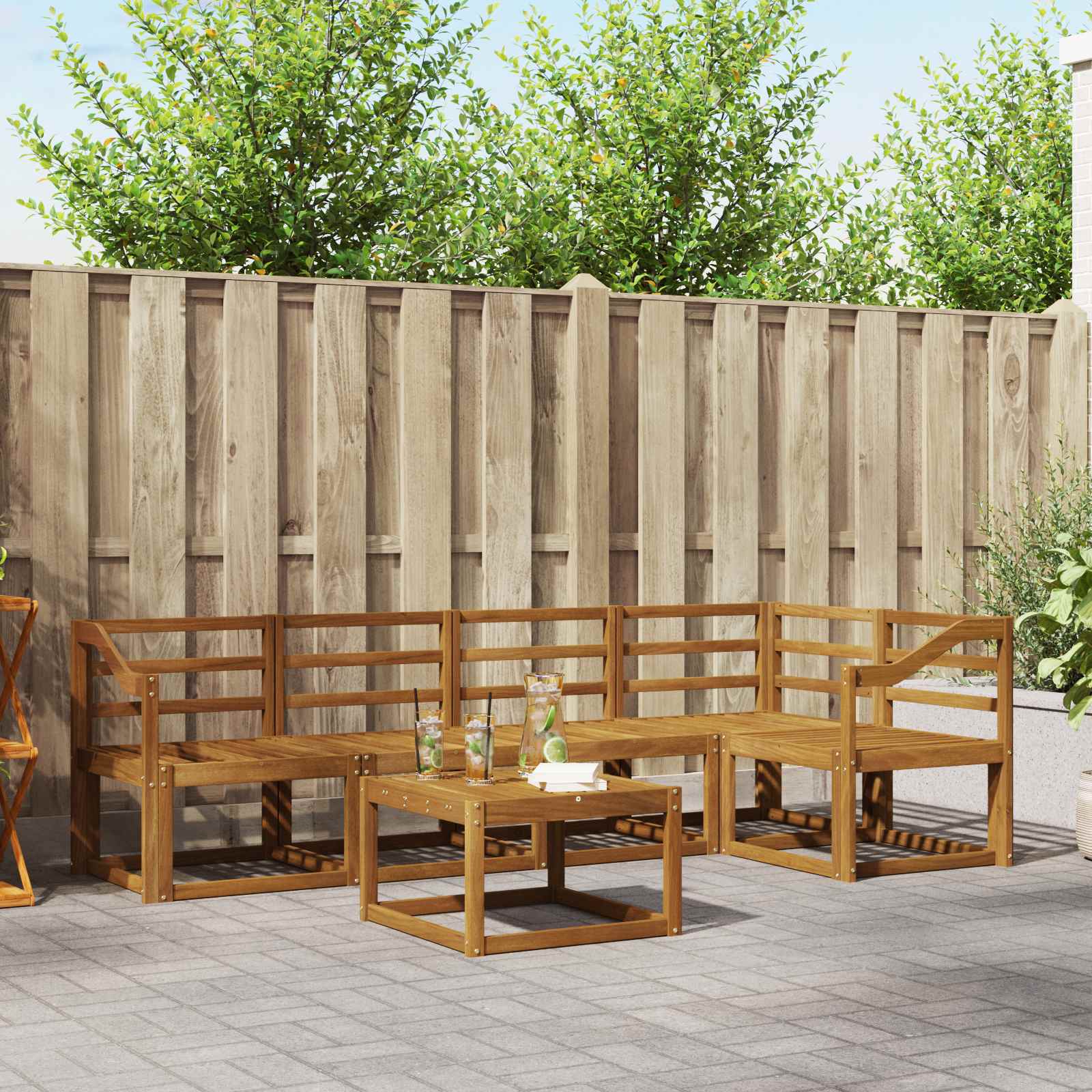 • Kestävä täysi akaasiapuu: Valmistettu kestävästä täysistä akaasiapuista, tämä sarja tunnetaan kestävyydestään ja kestävyydestään. Sen tukevat rakenteet tarjoavat luotettavaa tukea ja pitkäikäisyyttä, ja lämmin luonnollinen sävy parantaa puutarhasi tai terassisi ilmettä.