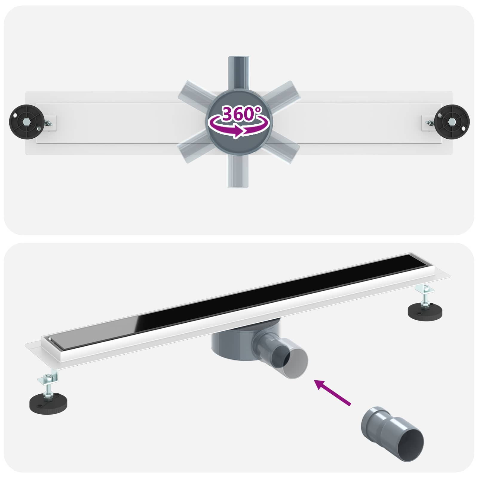 • Säädettävät ominaisuudet: Korkeussäädettävä muotoilu mahdollistaa viemärin säädön 0-30 mm, mikä tuo joustavuutta erilaisiin suihkusuunnitelmiin. Tämä takaa, että vesi ohjautuu tehokkaasti viemärijärjestelmään.