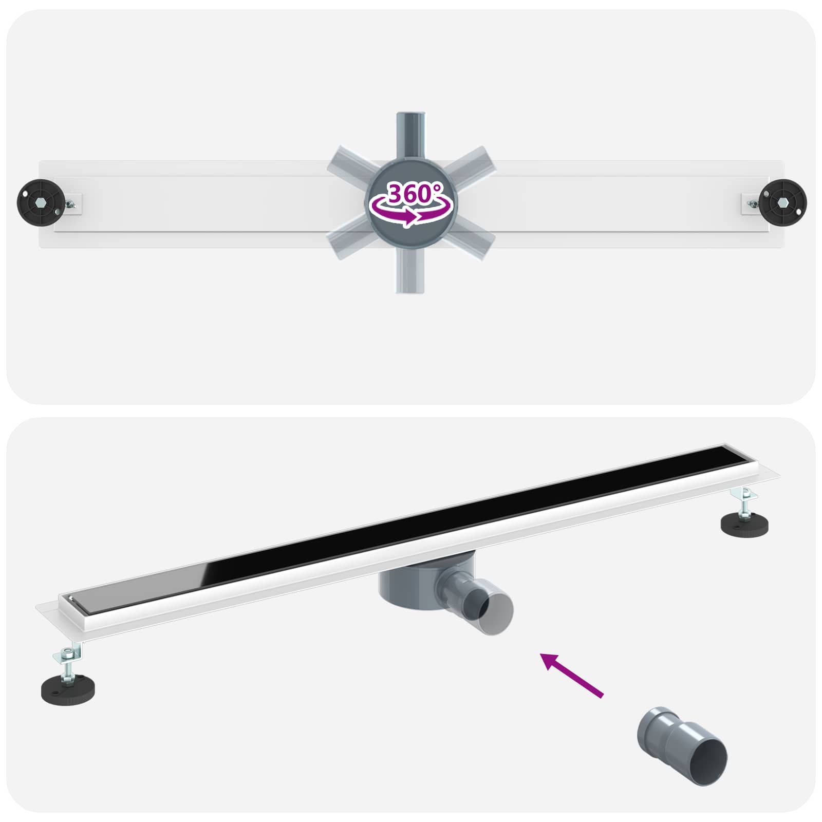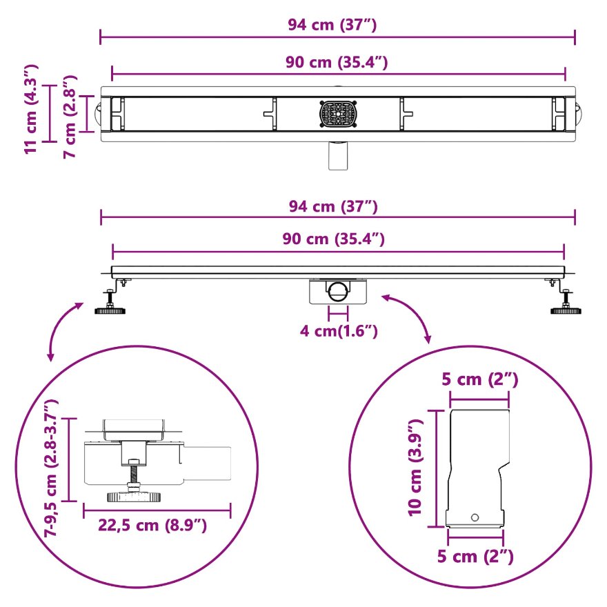 • Materiaalit: Suihkuviemäri on tehty kestävästä ruostumattomasta teräksestä 304, joka pitää pintansa erinomaisena pitkään jopa kosteissa olosuhteissa. Vankka rakenne estää muotoutumista ja kulumista, tehden siitä luotettavan valinnan mihin tahansa suihkuun.