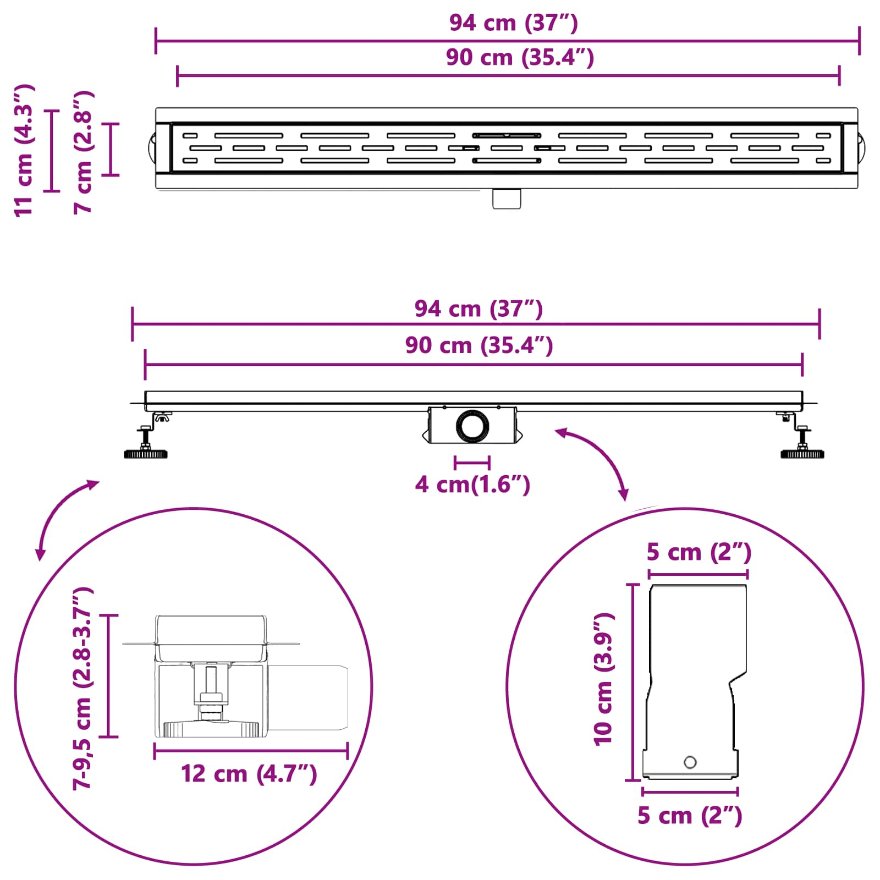 • Täydellinen viemärisarja: Sarja sisältää kaiken oleellisen, kuten vesitiiviin kankaan, muoviputken ja säädettävät jalat. Nämä osat takaavat helpon asennuksen ja tehokkaan veden virtauksen, estäen vesimuodostuksen suihkutilassa.