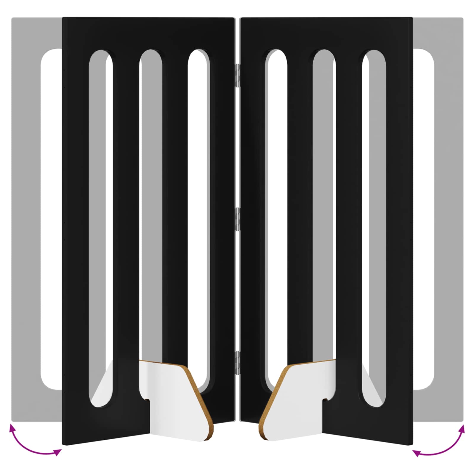 • Joustavat taitettavat paneelit: Paneelit on suunniteltu yhdistettävistä osista ja kääntyvistä saranoista, joten ne liikkuu jopa 180°. Tämä rakenne mahdollistaa aidan muodon säätämisen eri huoneiden tarpeisiin.