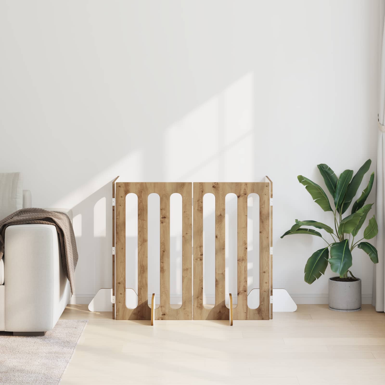 Tää monipuolinen taitettava lemmikkiaita on kätevä ratkaisu sisätilojen hallintaan joustavilla rajoilla. Kestävä tekninen puu takaa vakaan rakenteen ja minimalistinen muotoilu sulautuu hyvin moderniin sisustukseen. Paneelit kääntyy ja taittuu, joten asetelmia voi muuttaa helposti huoneen mukaan. Asennus tapahtuu ilman poraamista, joten seinät ja lattiat pysyy ehjinä.