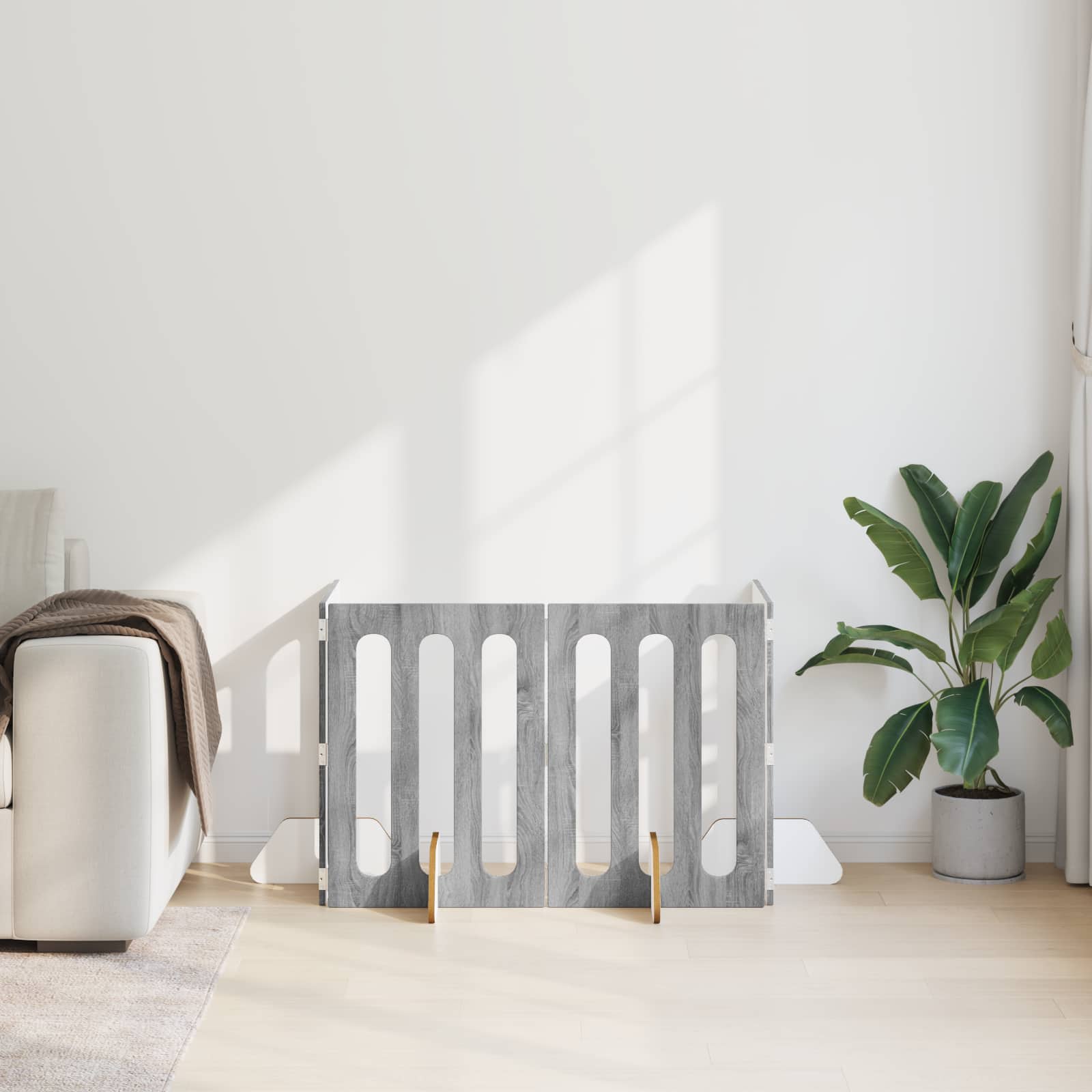 Tää monipuolinen taitettava lemmikkiaita on kätevä ratkaisu sisätilojen hallintaan joustavilla rajoilla. Kestävä tekninen puu takaa vakaan rakenteen ja minimalistinen muotoilu sulautuu hyvin moderniin sisustukseen. Paneelit kääntyy ja taittuu, joten asetelmia voi muuttaa helposti huoneen mukaan. Asennus tapahtuu ilman poraamista, joten seinät ja lattiat pysyy ehjinä.