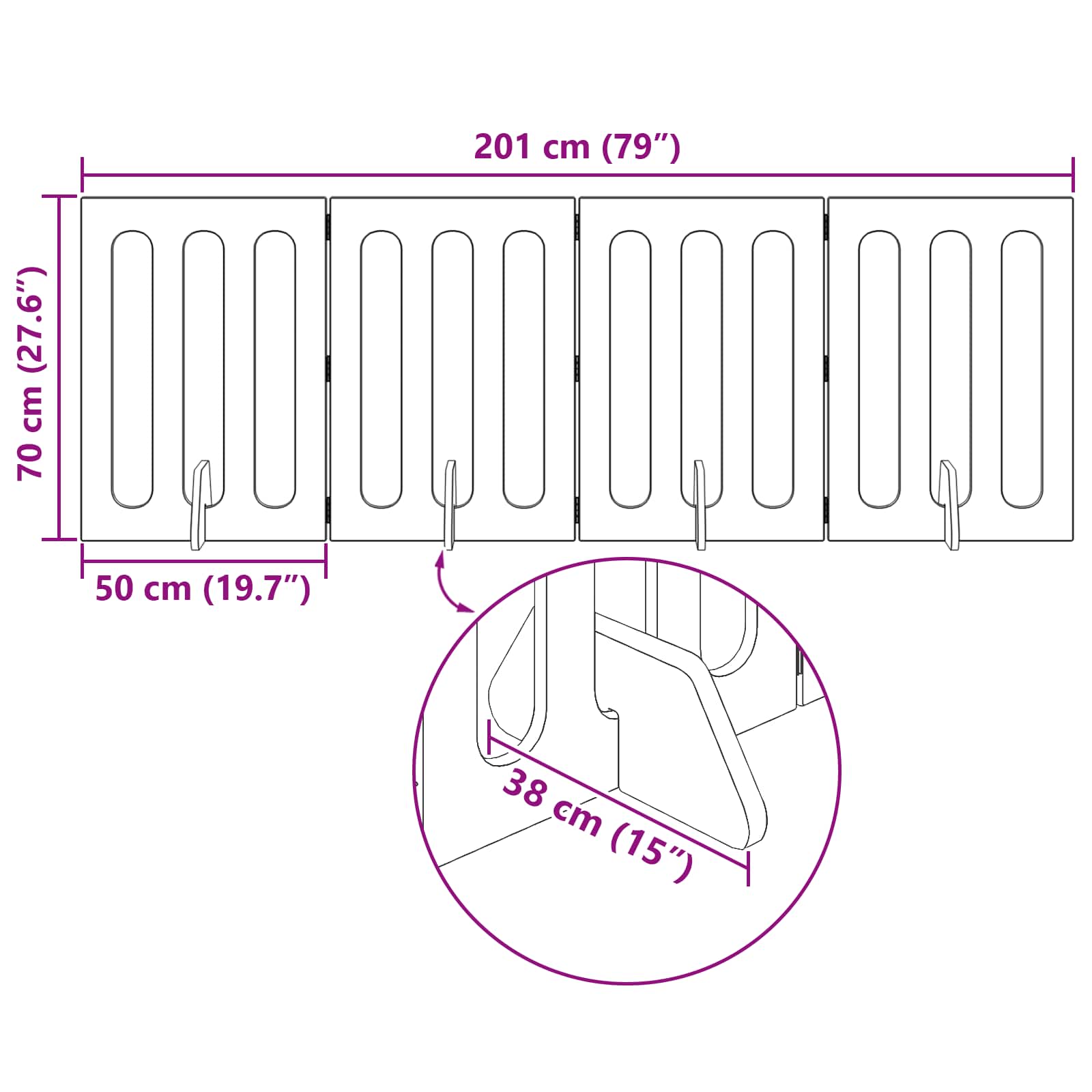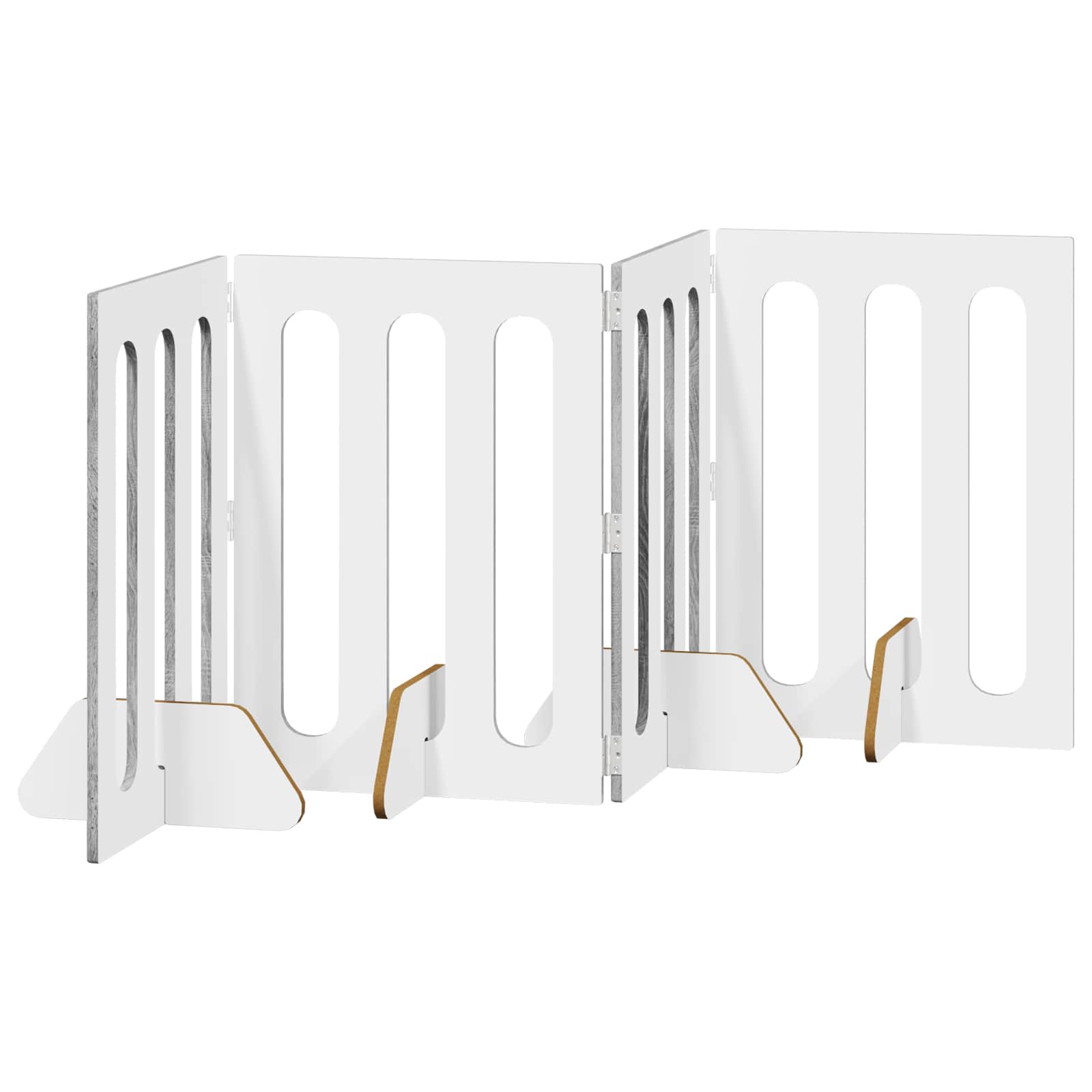 • Joustavat taitettavat paneelit: Paneelit on suunniteltu yhdistettävistä osista ja kääntyvistä saranoista, joten ne liikkuu jopa 180°. Tämä rakenne mahdollistaa aidan muodon säätämisen eri huoneiden tarpeisiin.
