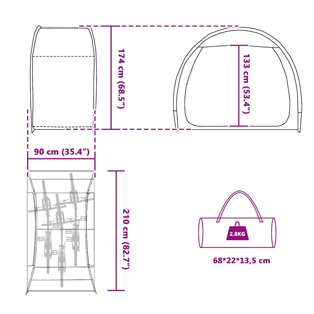 Tämä kannettava ulkoilmateltta on mahtava valinta kaikille, jotka rakastavat pyöräilyä ja ulkona olemista. Se tekee pyöräsi säilyttämisestä turvallista ja vaivatonta. Moderni muotoilu toimii hienosti sekä kaupungissa että maaseudulla. Epäläpinäkyvä pyöreä muoto estää uteliaat katseet. Tämä teltta on sekä kätevä että kestävä, ei ole väliä sään kanssa. Vetoketju toimii sujuvasti, ja mitat 210 x 90 x 174 cm tarjoavat runsaasti tilaa keskikokoisille pyörille. Täältä löytyy varasto mille tahansa, oli se sitten puutarhassa, retkeilyalueella tai autotallissa.