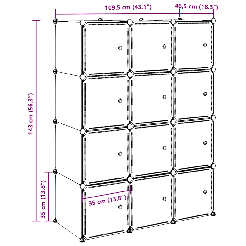 Tallennuskuution järjestäjä 12kuutiolla ja ripustustangoilla PP