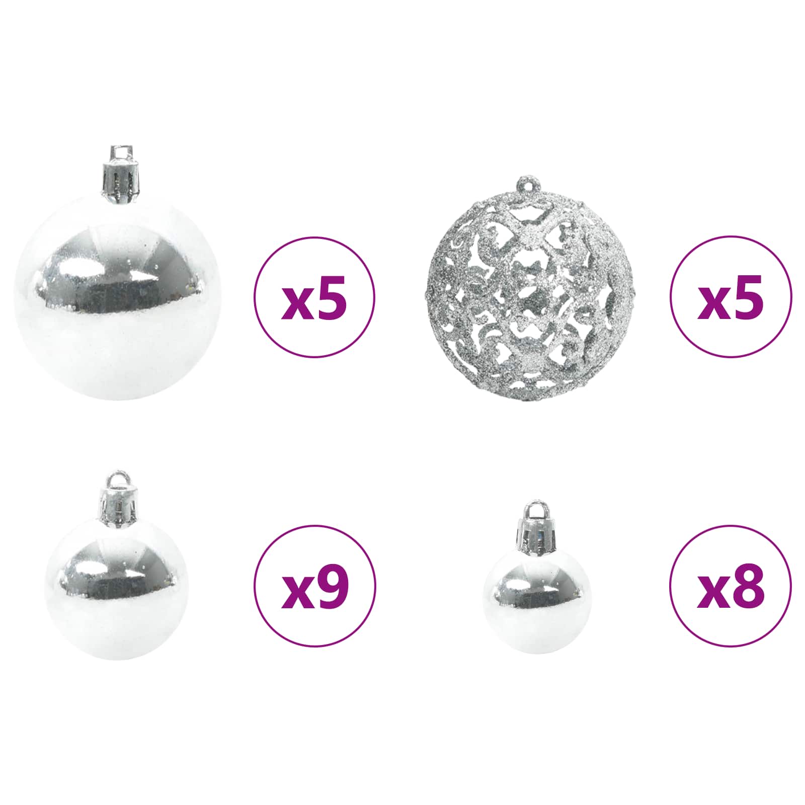 • PVC- ja teräsrakenne: Tämä keinokuusi on valmistettu durablemista PVC:stä ja teräksestä, joten se kestää hyvin vuodesta toiseen. Materiaalin kestävyys ja terästuki takaavat, että se pysyy tukevana. Kokoaminen onnistuu helposti ruuvimeisselillä.