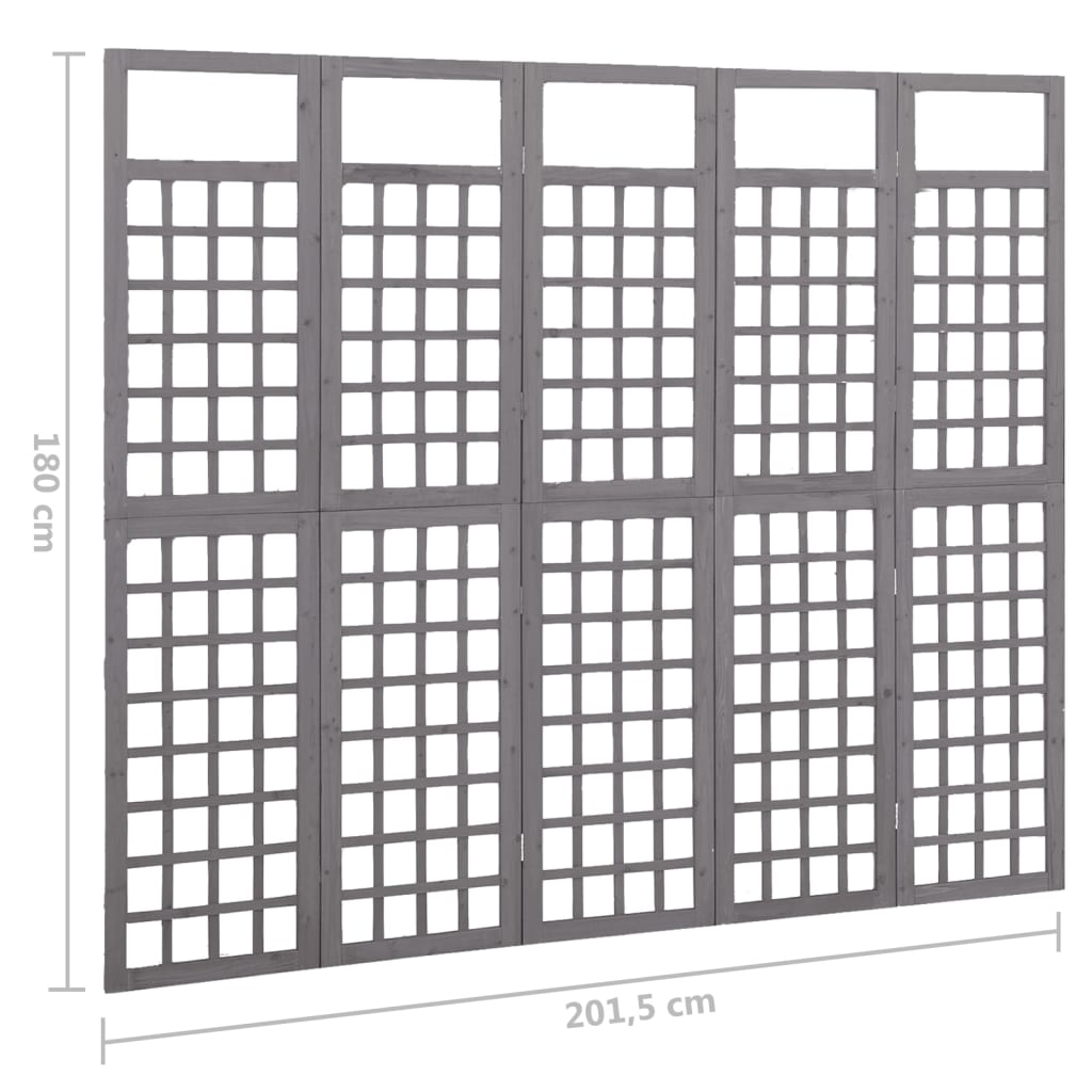 Tilanjakaja/säleikkö 5 paneelia täysi kuusi harmaa 201,5×180 cm