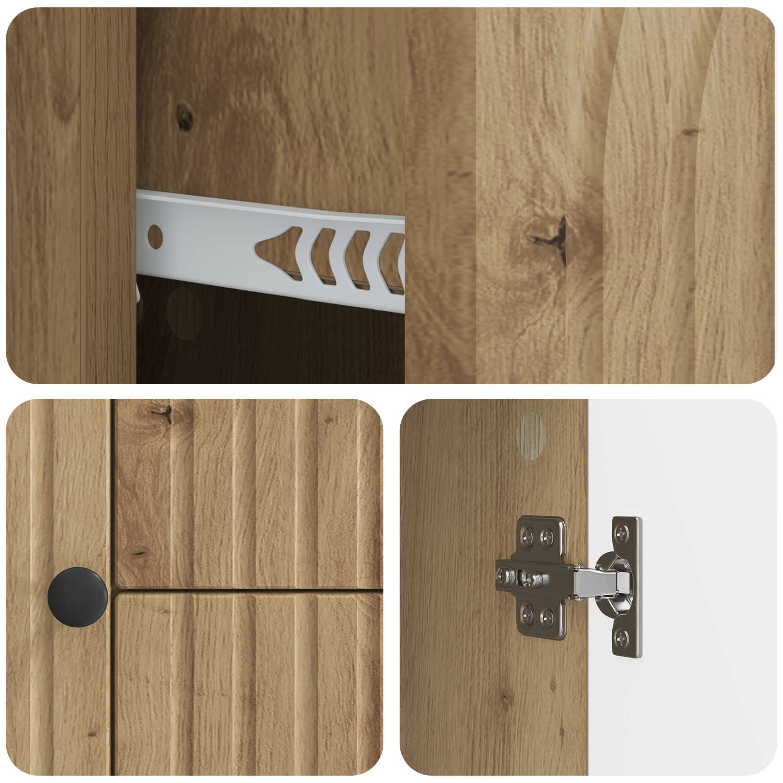 • Toiminnalliset 90° keinusaranaovet Nämä ovet mahdollistavat helpon pääsyn kaapin sisältöön ilman, että tyyli kärsii. Saranoiden toiminta on sujuvaa, mikä tekee käytöstä vaivatonta.