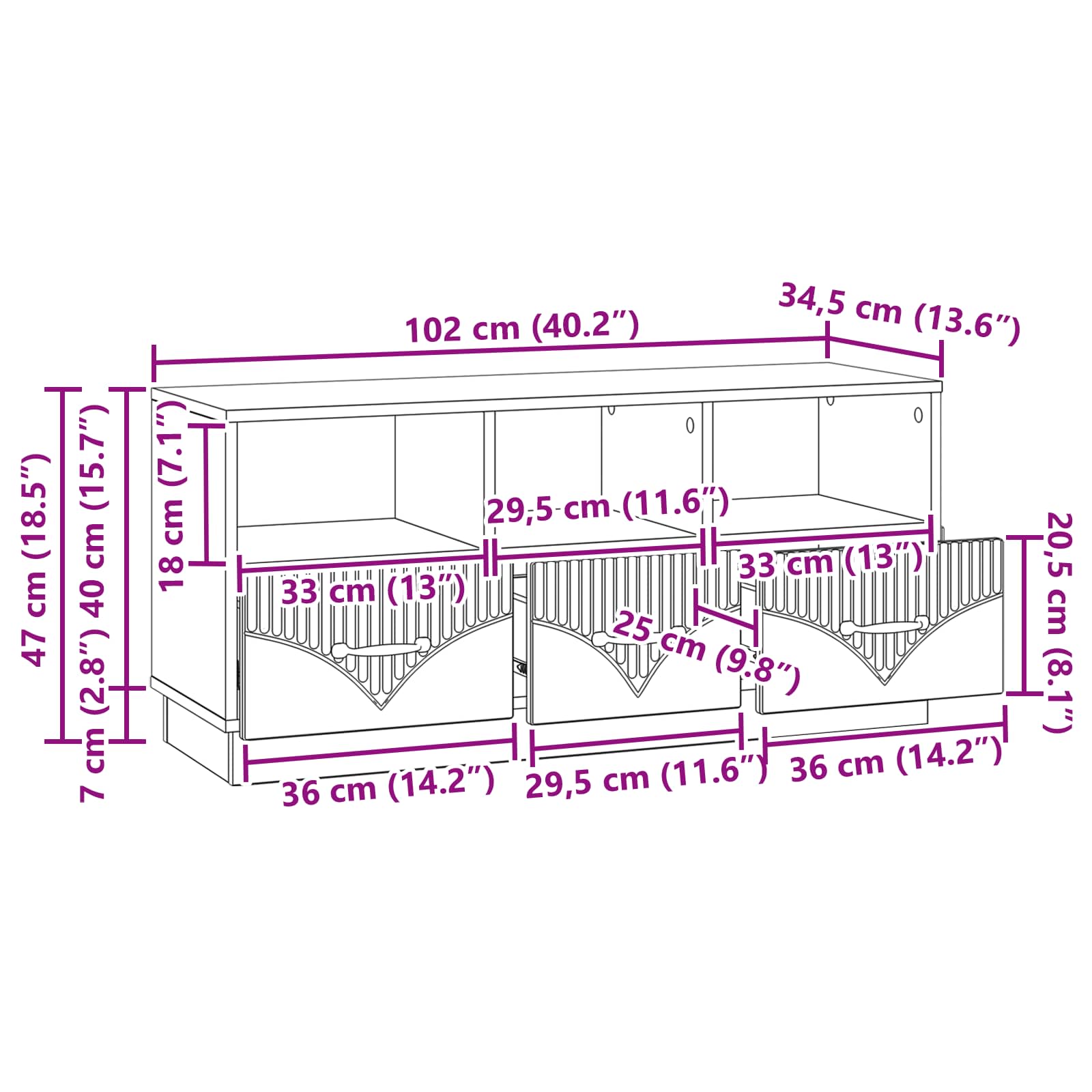TV-kaappi Betoninharmaa 102 x 34,5 x 47 cm Tekninen puu