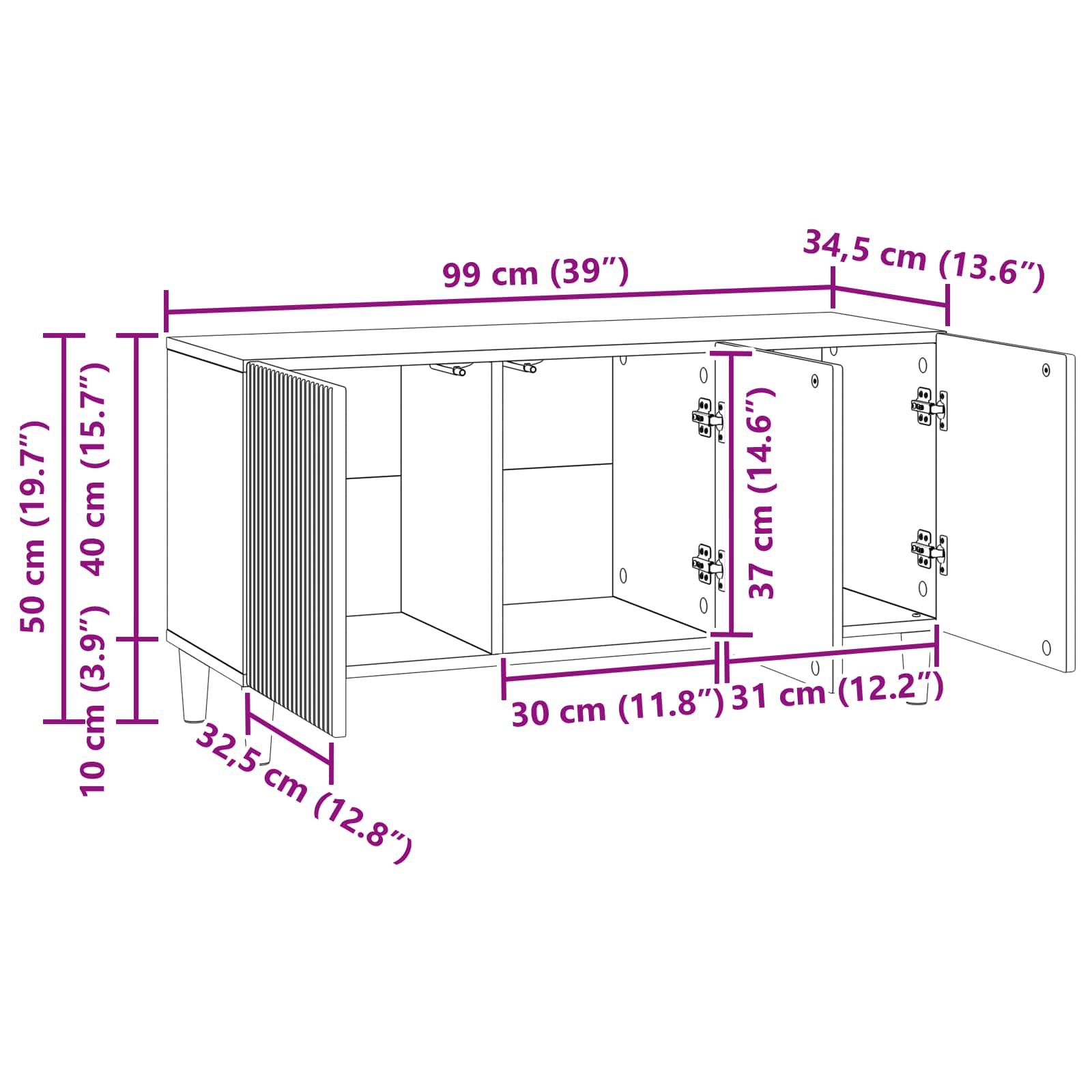 • Yleiset mitat: 99 x 34,5 x 50 cm (P x L x K)