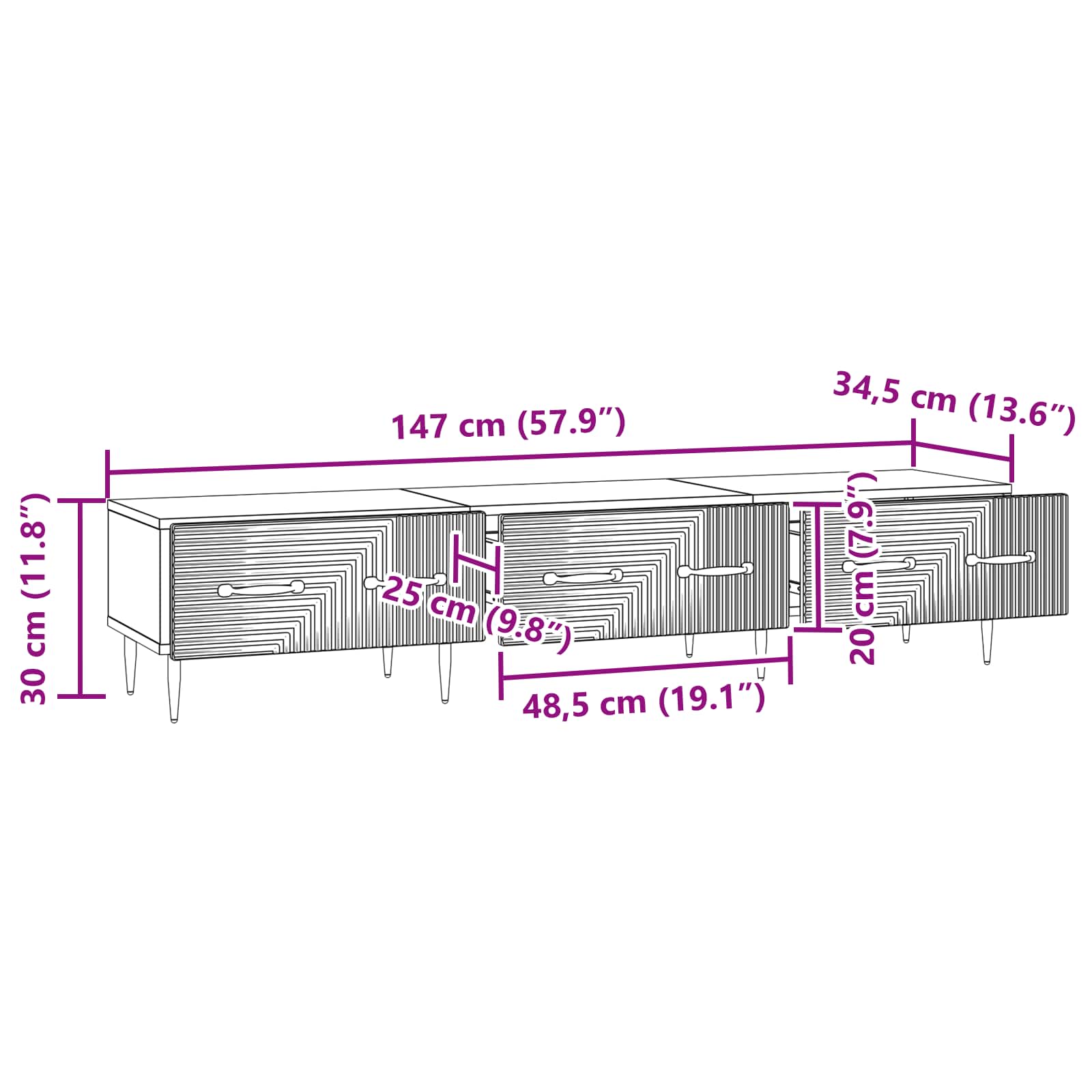 • Yleiset mitat: 147 x 34,5 x 30 cm (P x L x K)