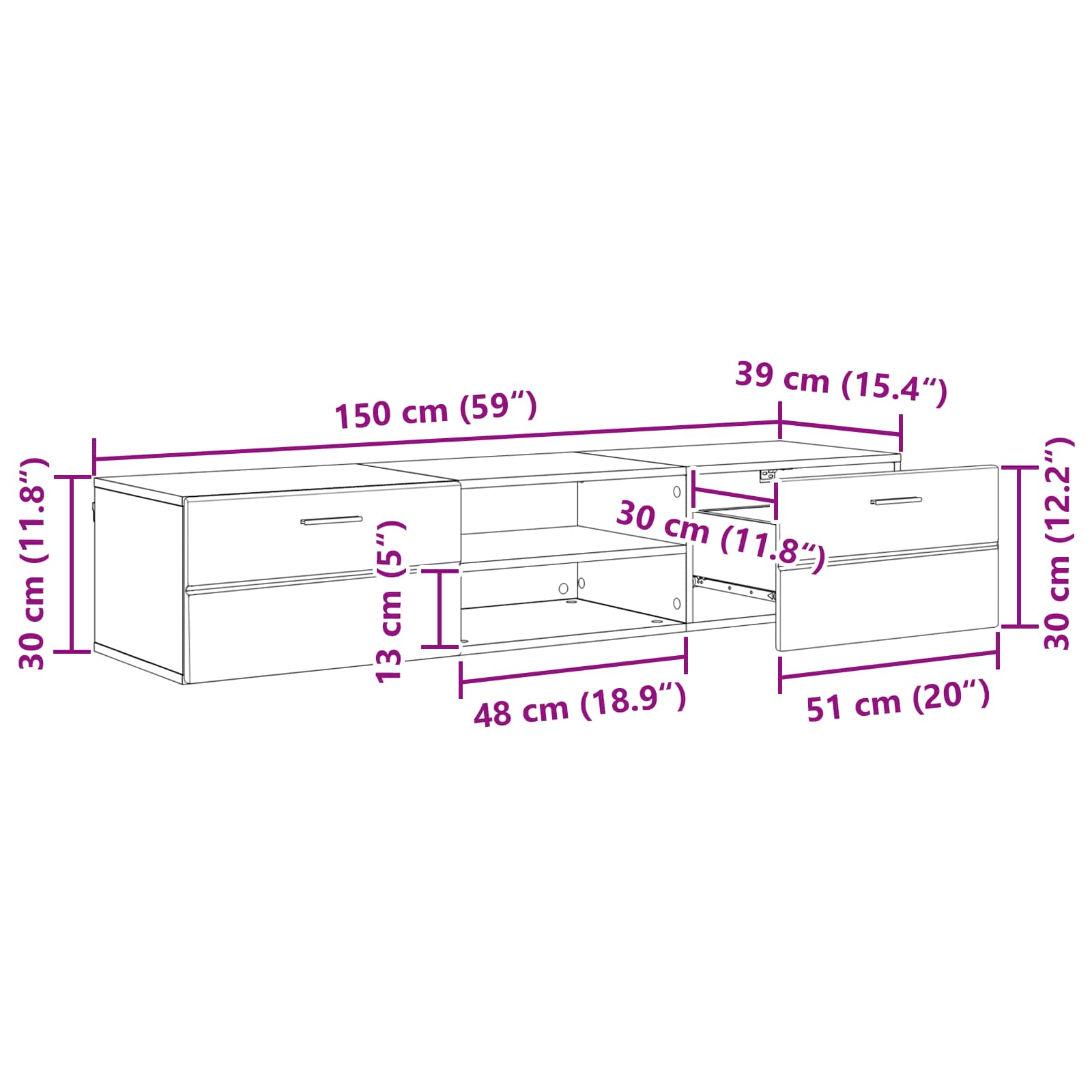 TV-kaappi Korkeakiilto valkoinen 150 x 39 x 30 cm Tekninen puu
