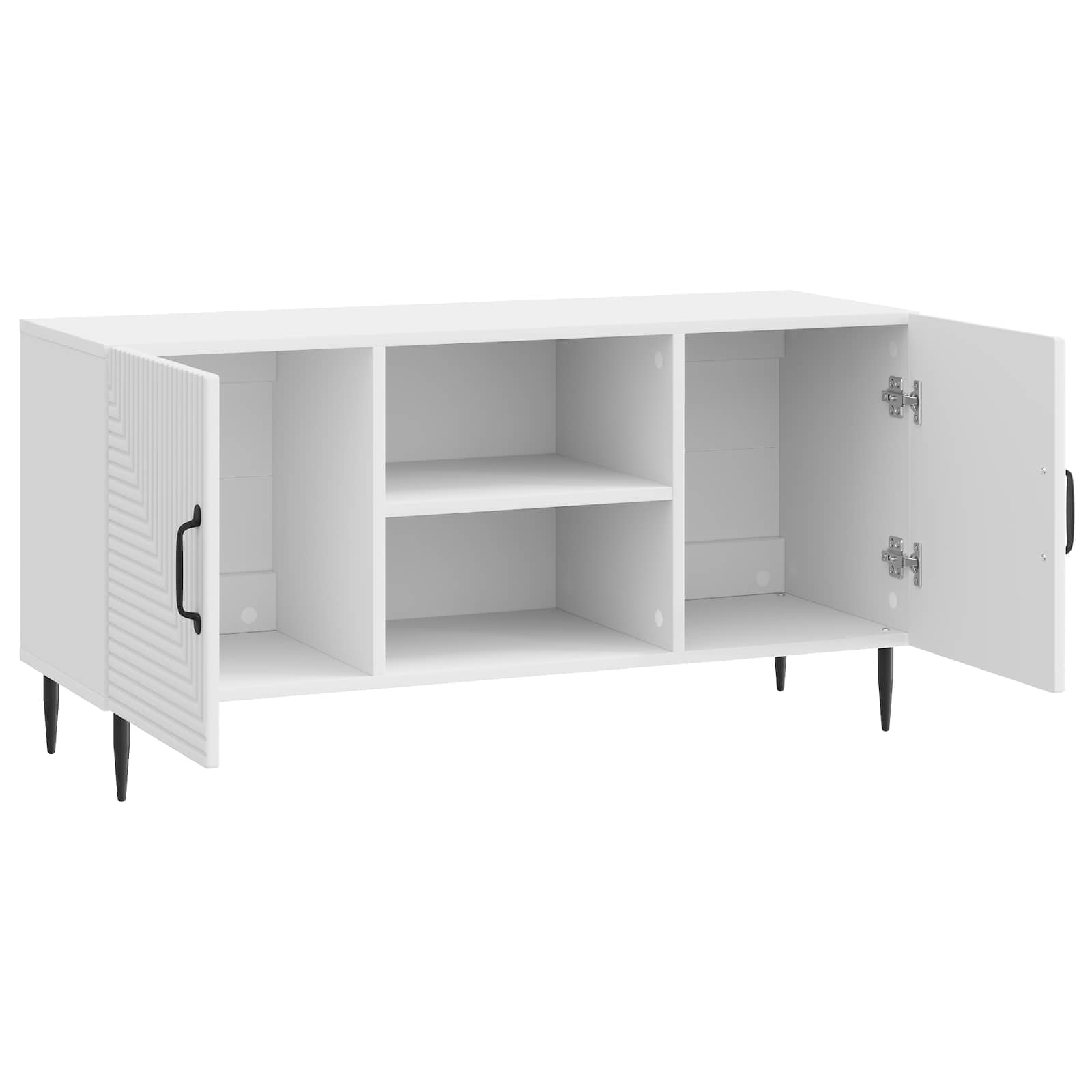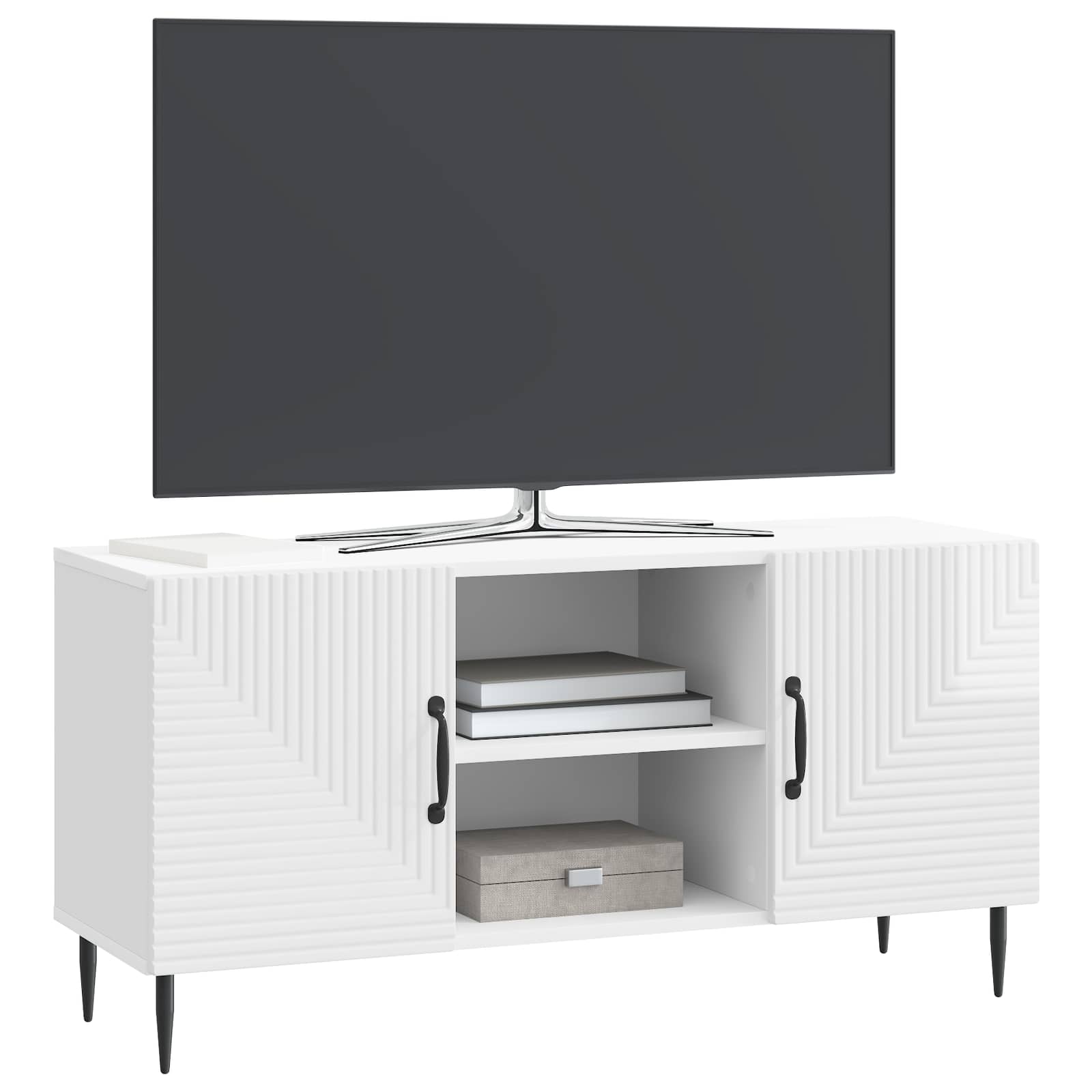 • Runsaasti sisäistä säilytystilaa: TV-kaapissa on paljon tilaa, joka mahdollistaa erilaisten asioiden, kuten kirjojen ja elektroniikan, säilyttämisen. Säädettävät hyllyt tekevät siitä helppokäyttöisen ja joustavan.