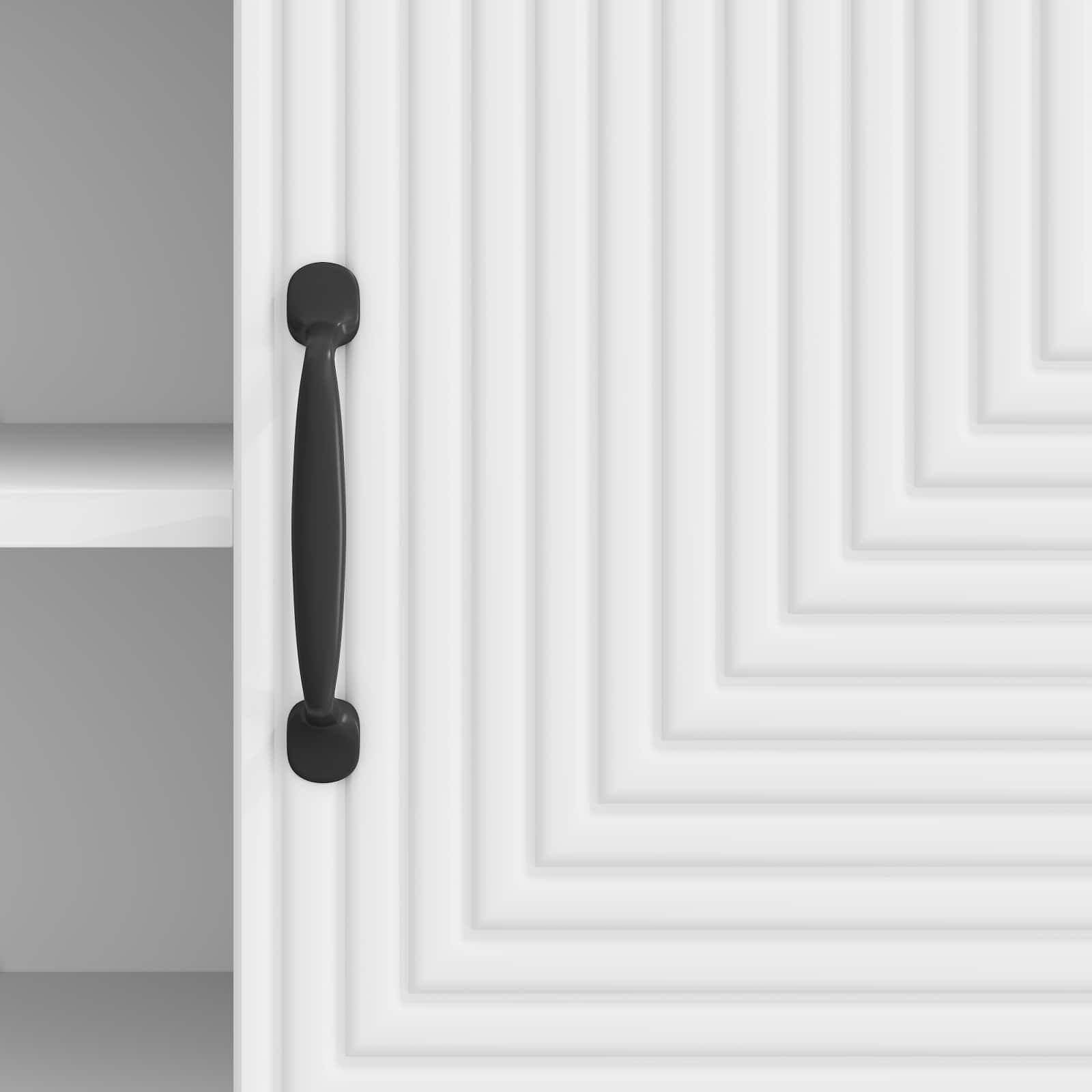 • Tankokahvojen mukavuus: Mustat tankokahvat tekevät ovista helposti käytettäviä ja lisäävät visuaalista viehätysvoimaa. Ne sopivat täydellisesti kaapin muotoiluun ja tuovat modernia väriä vintage-tyyliin.