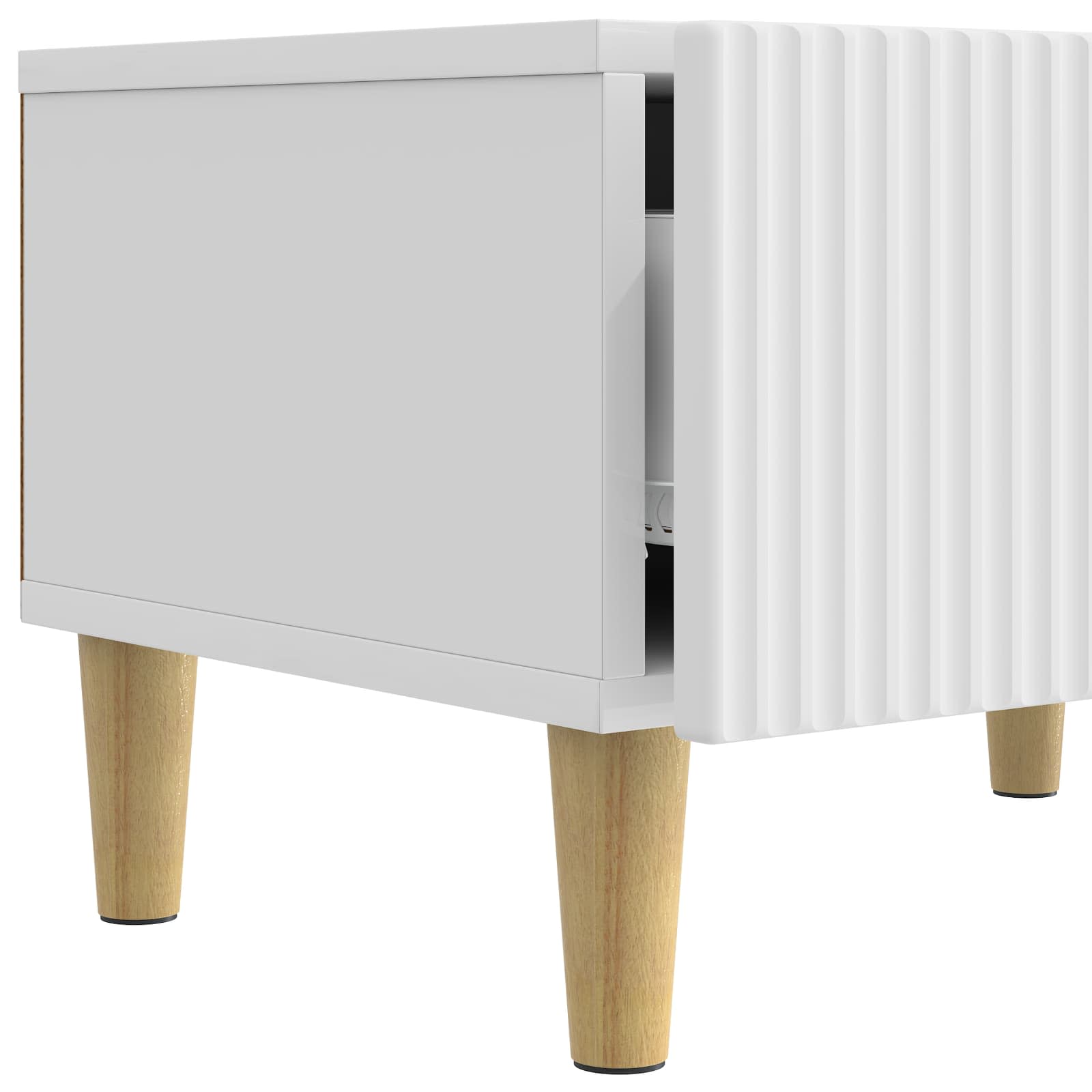 • Toiminnalliset suunnittelun piirteet: Viihdekeskuksessa on säädettäviä hyllyjä, jotka tarjoavat joustavuutta eri mediasisältöjen koon mukaan. Tämä mukautuvuus antaa käyttäjälle mahdollisuuden räätälöidä yksikkö omien tarpeidensa mukaiseksi, optimoi tilaa niin pienille laitteille kuin suuremmille, kuten pelikonsoleille ja äänijärjestelmille.