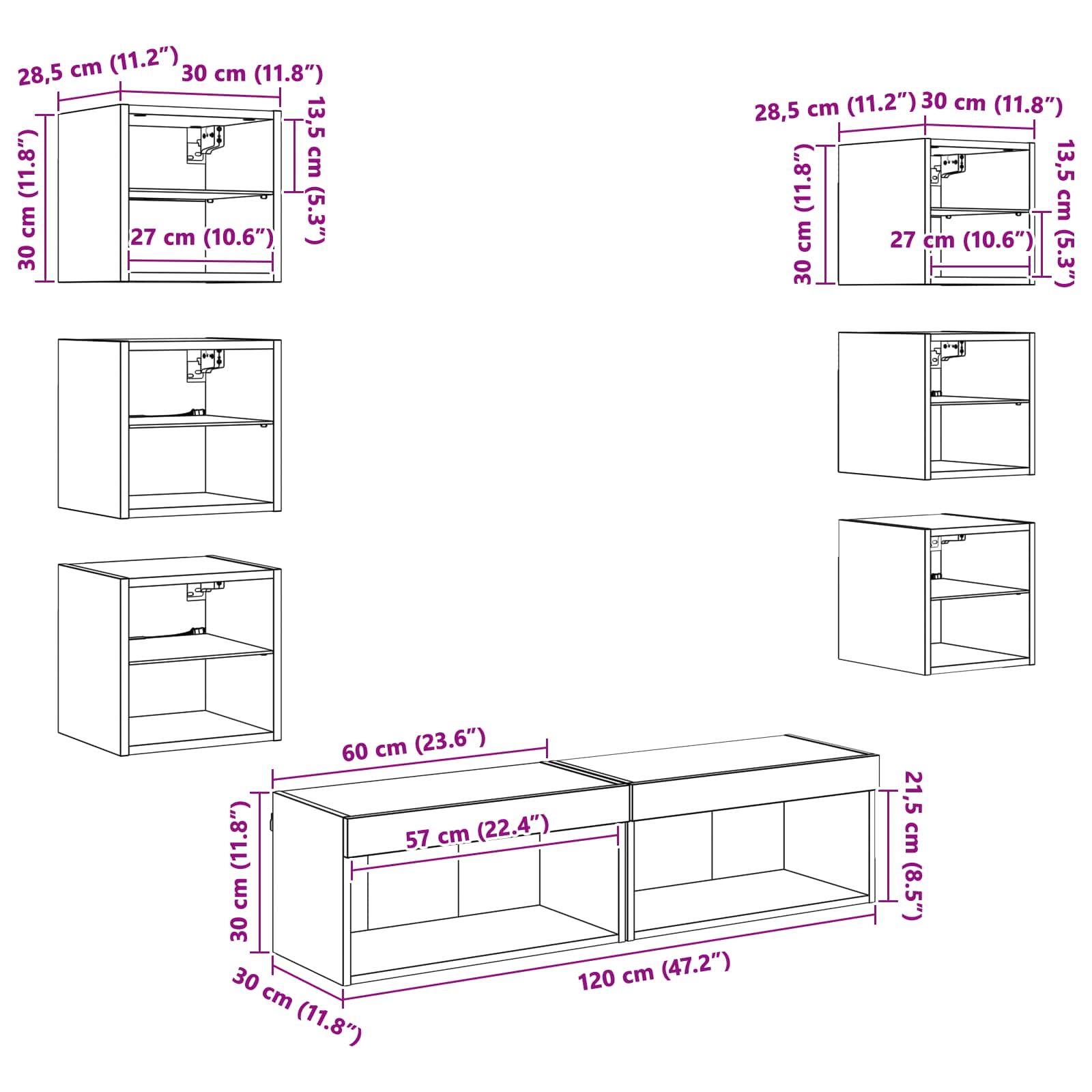 • 6 x seinäkaappi: 30 x 28.5 x 30 cm (P x L x K)