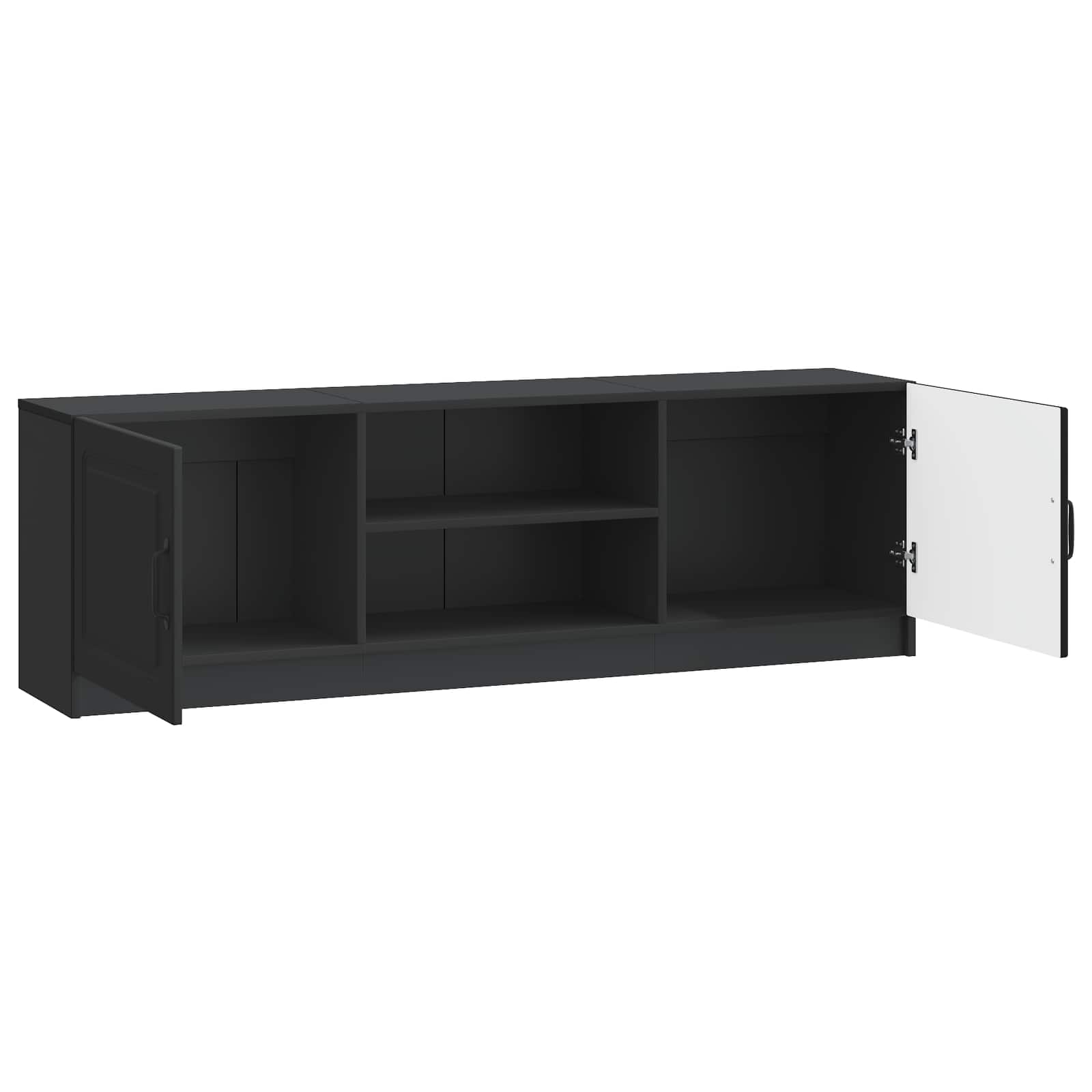 • Liikkuvat levyhyllyt: Tämä kaluste sisältää monipuolisia levyhyllyjä, joihin mahtuu erikokoisia media-laitteita ja muita tarvikkeita. Hyllyt toimivat erinomaisesti sekä pelikonsolien, äänijärjestelmien että koriste-esineiden järjestämisessä, tarjoten käytännöllisyyttä ja siistiä ilmettä.