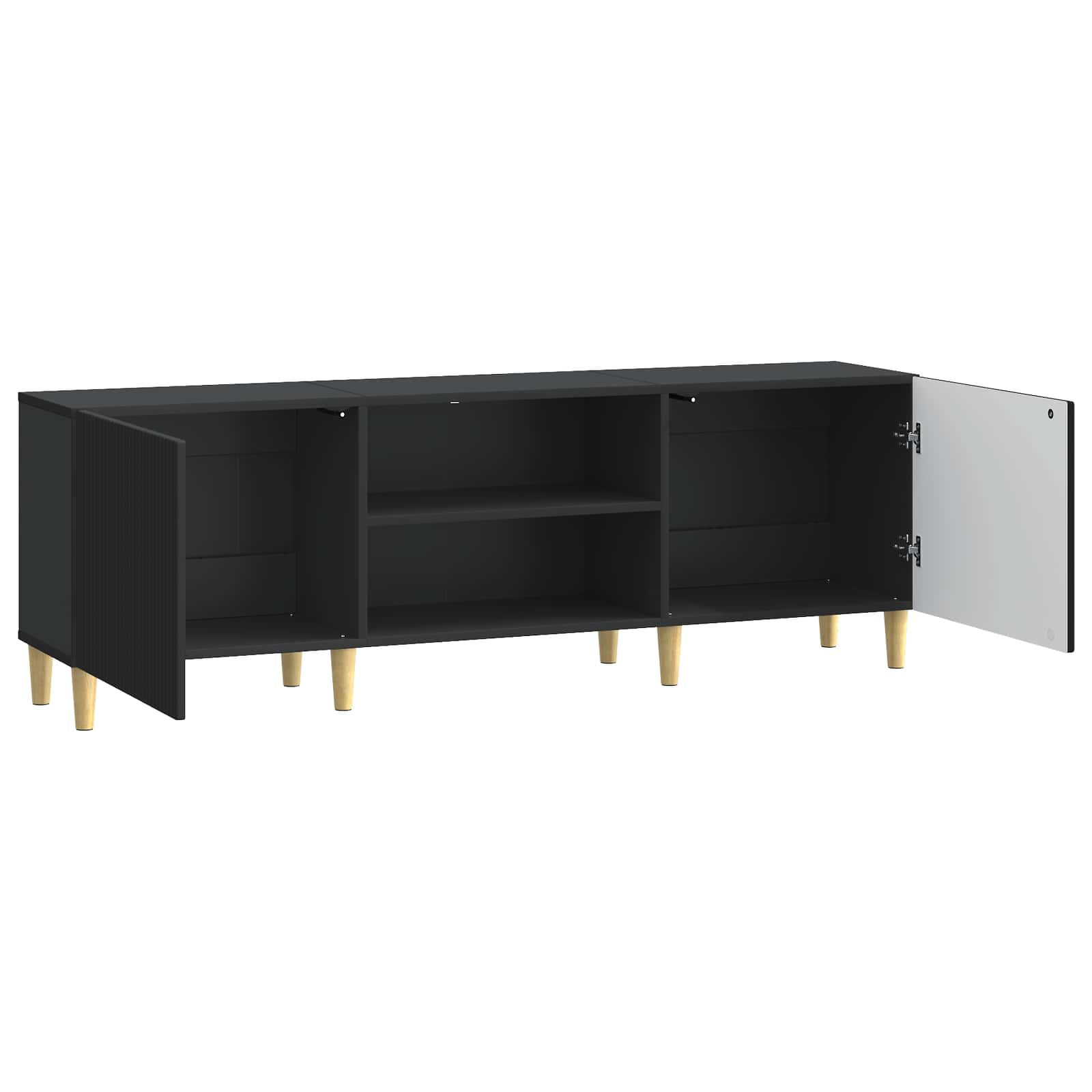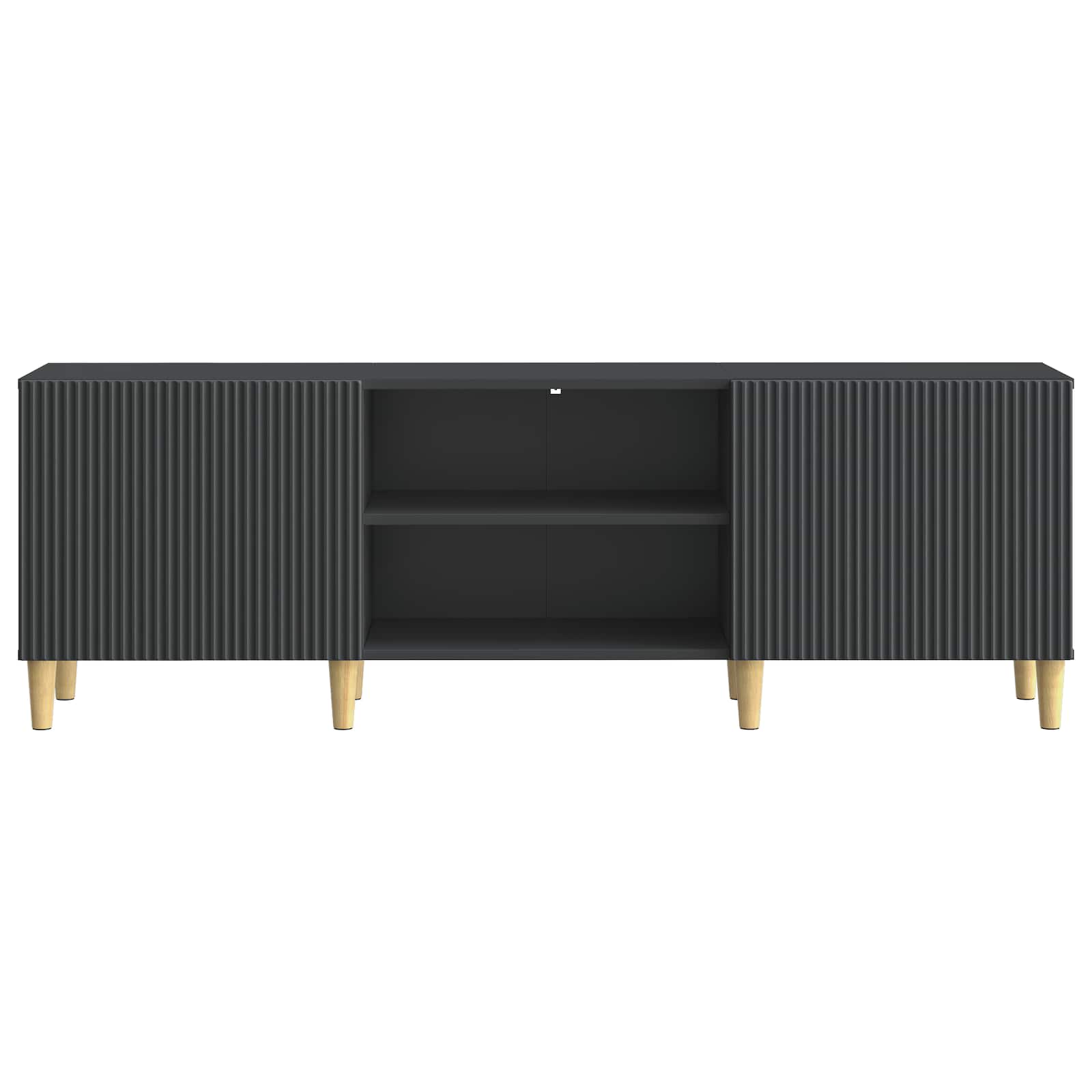 • Kartiojalat Televisiokaappi seisoo kartiojaloilla, jotka parantavat sen modernia ilmettä ja luovat visuaalisesti houkuttelevan muodon. Nämä jalat tarjoavat vakautta ja vahvistavat kaapin rakennetta, houkutellen huomiota tyylikkäällä muotoilullaan.
