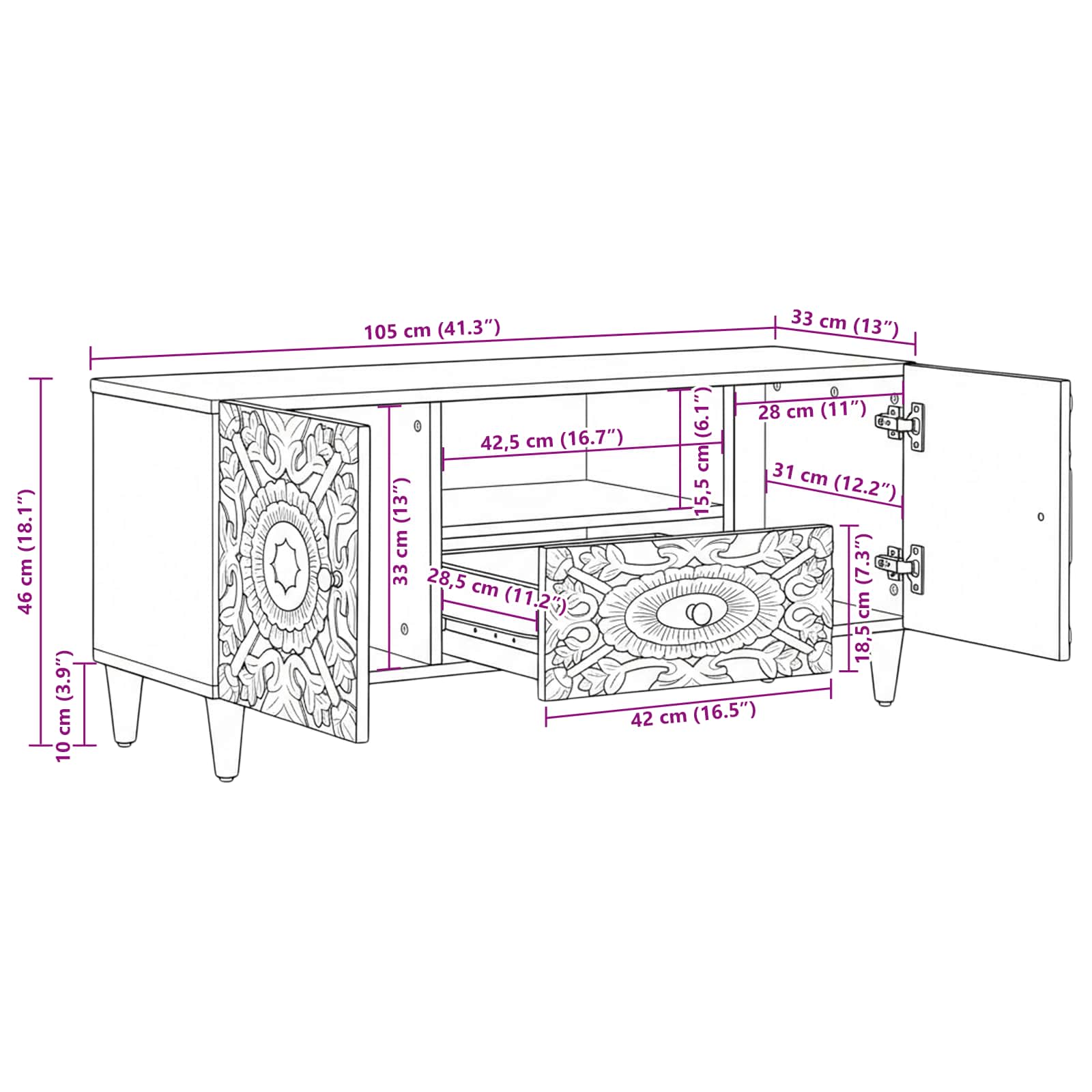 TV-kaappi ovella Ruskea 105 x 33,5 x 46 cm Kiinteä mango puu