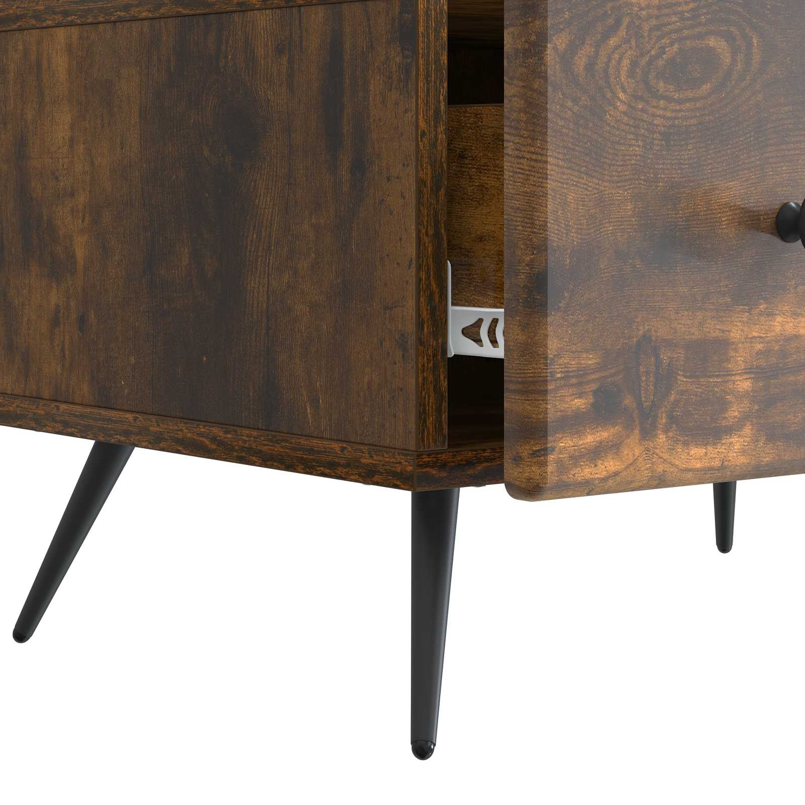 • Paljon säilytystilaa: Useilla osioilla, kuten hyllyillä ja laatikoilla, tämä viihdekeskus tarjoaa valtavasti tilaa median laitteille, DVD:ille ja muille tavaroille. Jokainen säilytysalue on suunniteltu hyödylliseksi, jolloin pääset helposti käsiksi, pitäen tilan siistinä.