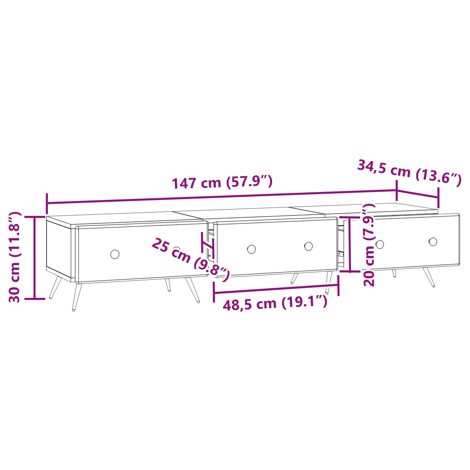 • Yleiset mitat: 147 x 34,5 x 30 cm (P x L x K)
