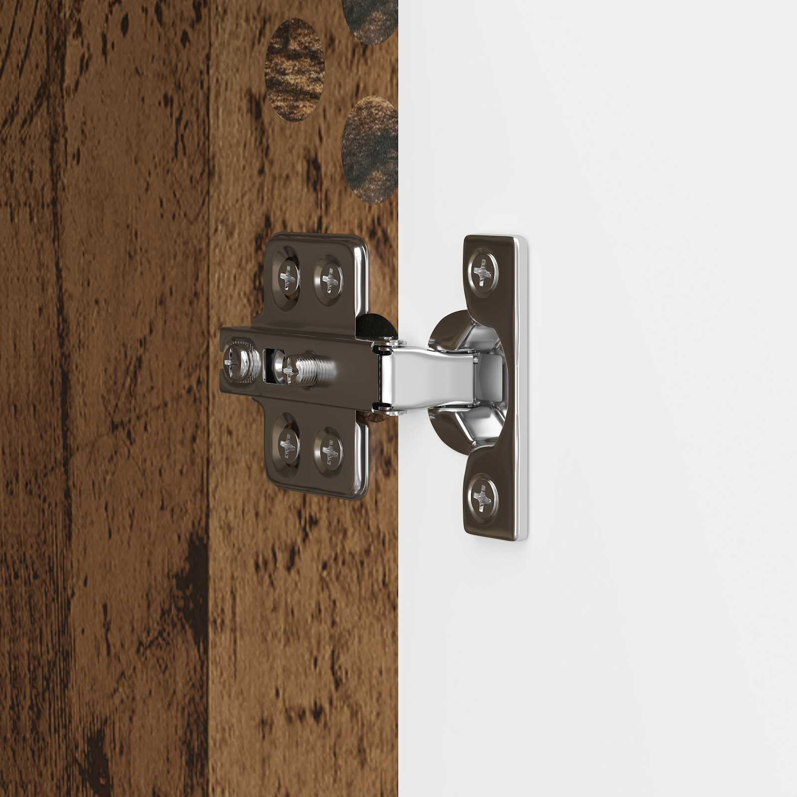 • Tyylikkäät 90° Keinuskaraovet: Kalusteessa on 90° avautuvat ovet, jotka on valmistettu samasta teknisestä puusta, ja niiden ansiosta pääset vaivattomasti käsiksi säilytyspaikkaan. Tämä ominaisuus tekee käytöstä entistä helpompaa arjessa.