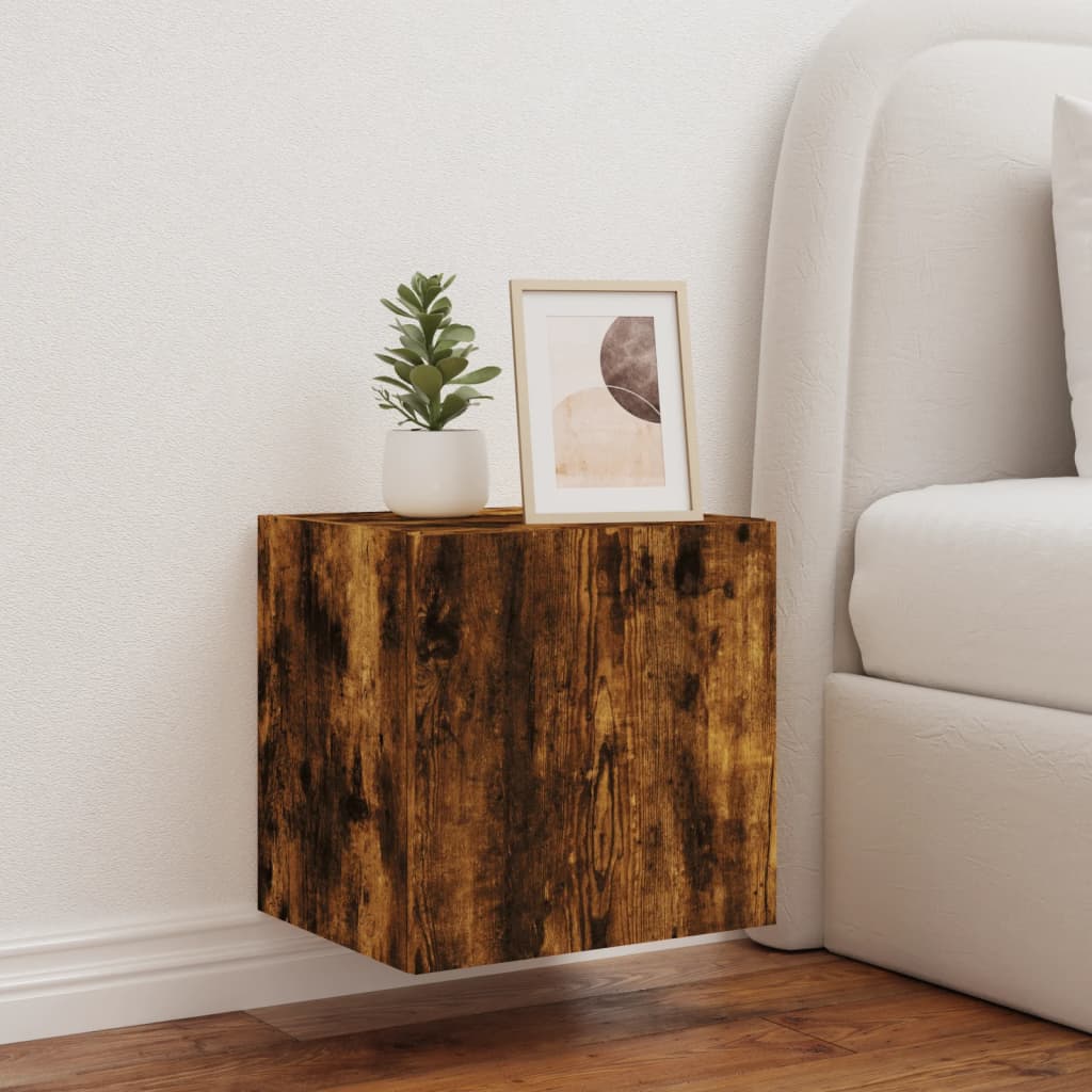 TV-seinäkaappi LED-valoilla savutammi 40,5x35x40 cm