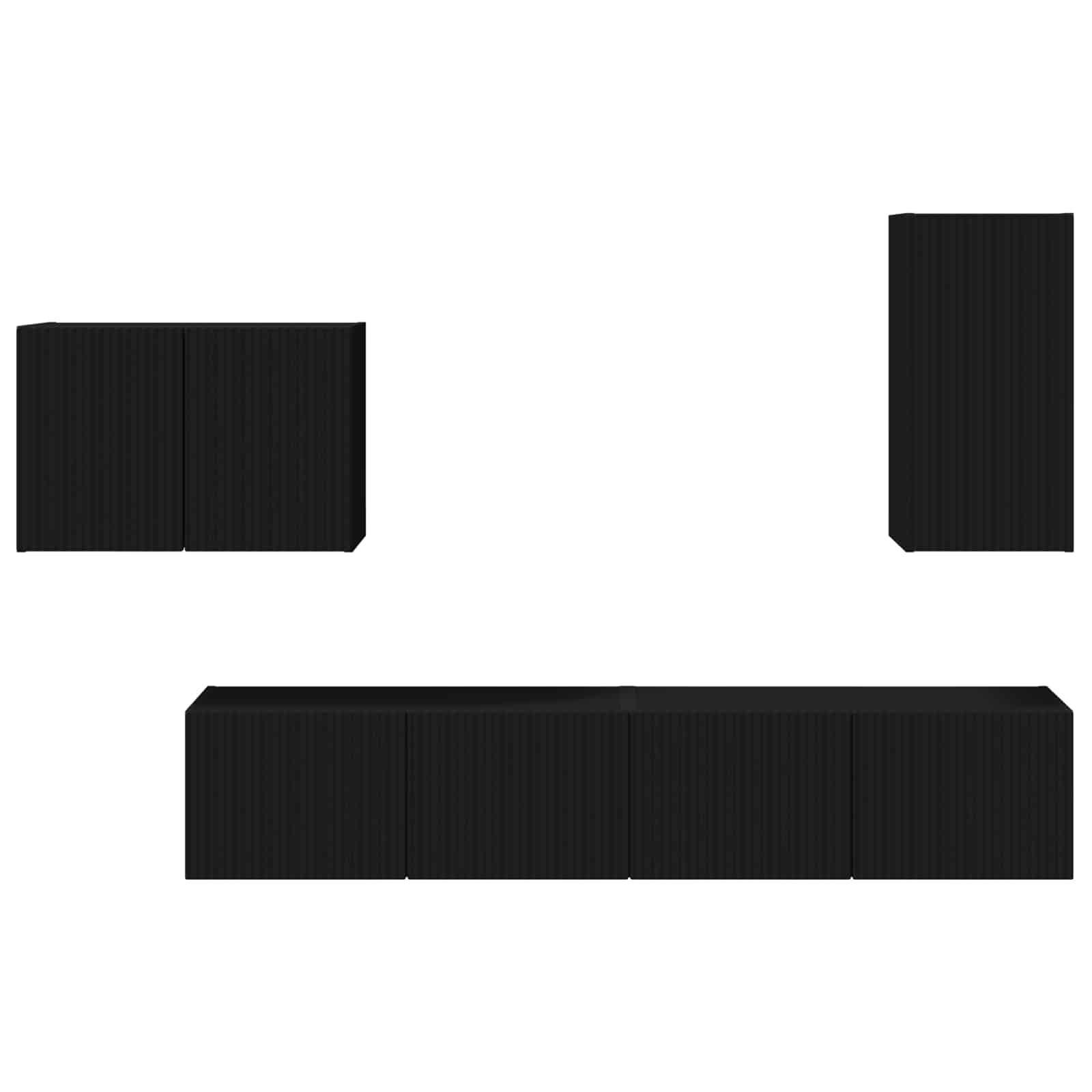 TV-seinäkaappi setti 4 pcs Musta Tekninen puu
