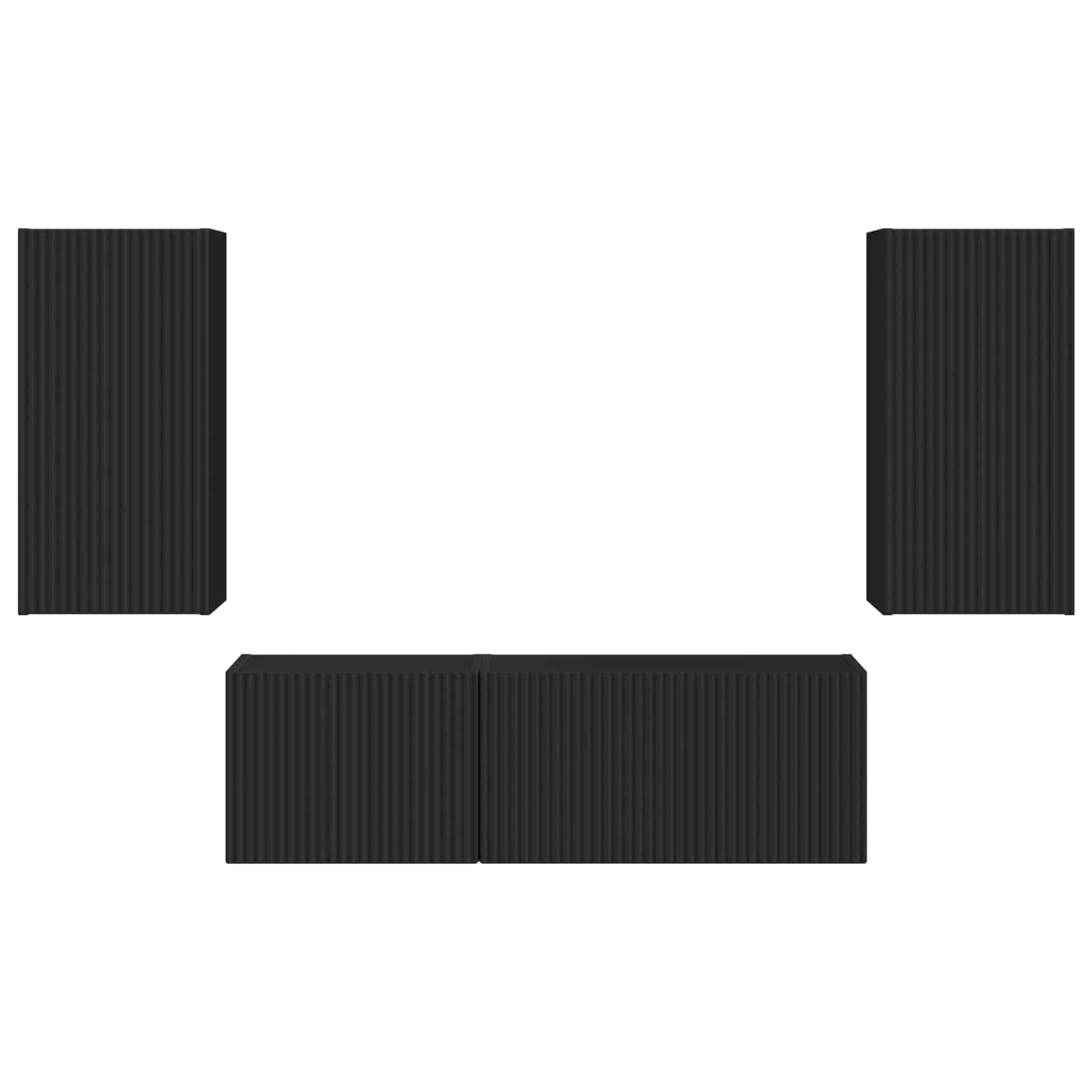 TV-seinäkaappi setti 4 pcs Musta Tekninen puu