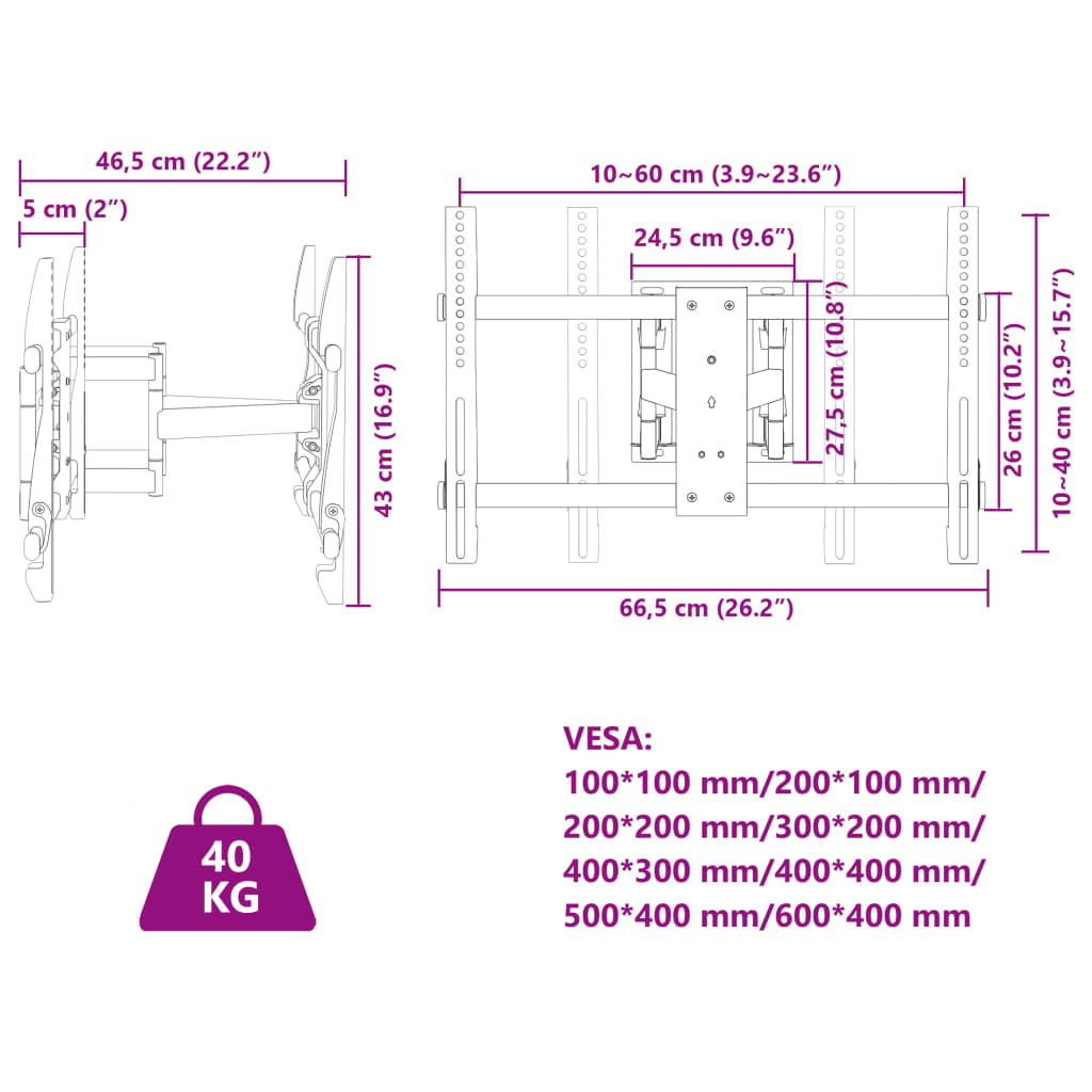 TV-seinäkiinnike 37″-80″ ruuduille Max VESA 600×400 mm 40 kg