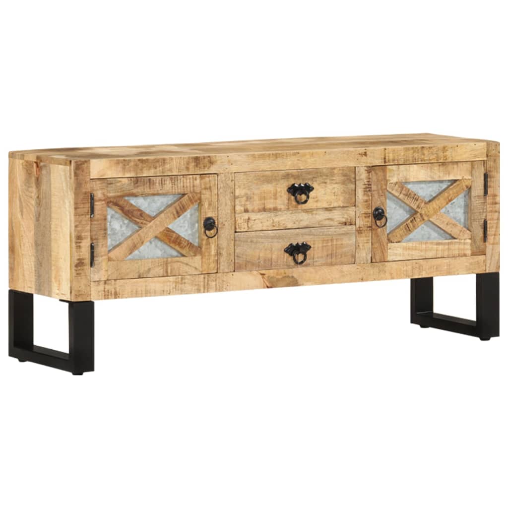 TV-taso on valmistettu karkeasta mangopuusta, jolla on voimaa kantaa painoa ja se kestää myös ajan kulumista. Käsityötaito ja kauniit puukuviot tekevät jokaisesta huonekalusta ainutlaatuisen ja hieman erilaisen kuin muut. Sivukaappi tarjoaa myös runsaasti säilytystilaa multimedialaitteille, mediasoittimille ja muille esineille.