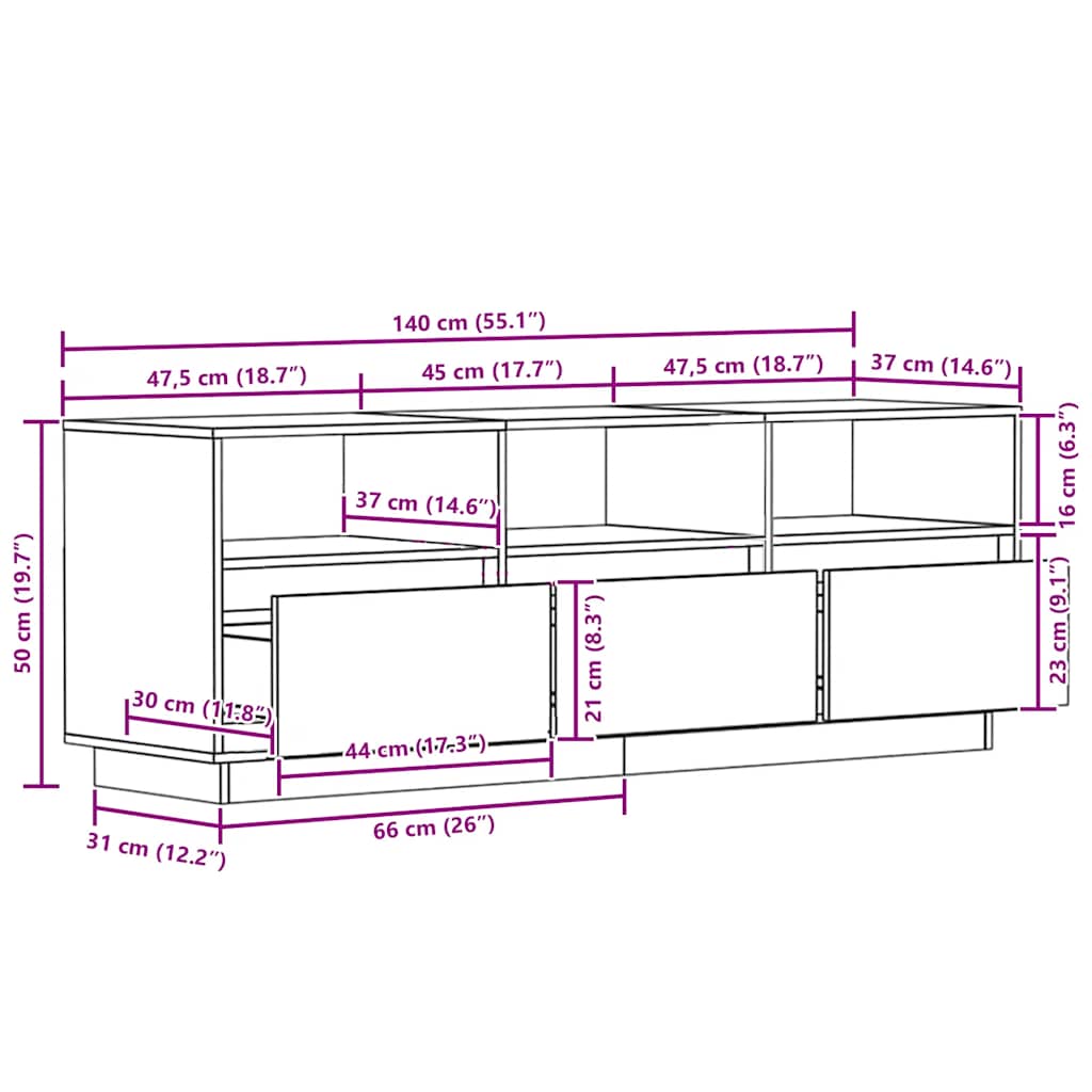 TV-taso valkoinen 140x37x50 cm täysi mänty