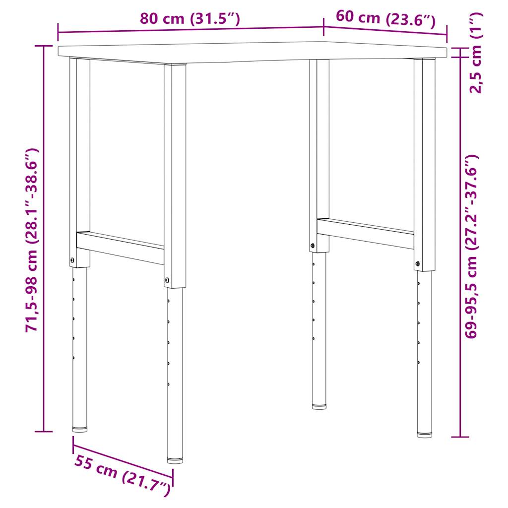 työpöytä tummanruskea 80x60x(71,5-98) cm massiivipuutammea