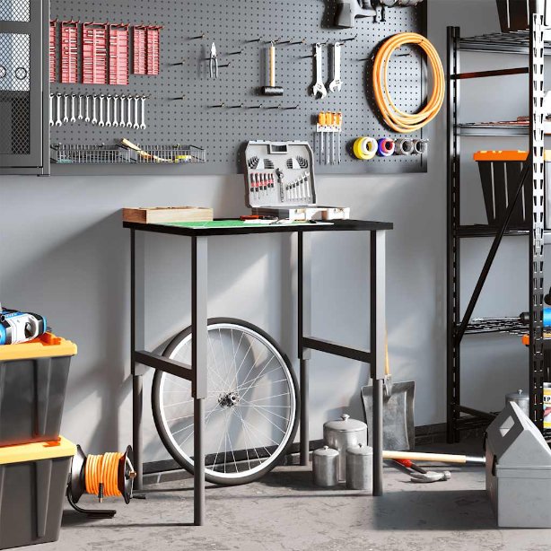 • Monipuolinen käyttö: Yksinkertaisen ja selkeän muotoilun ansiosta voit käyttää sitä työkalupenkkinä tai työpöytänä tarpeidesi mukaan. Työtaso on tarkoitettu käytännölliseksi ja käteväksi kalusteeksi.
