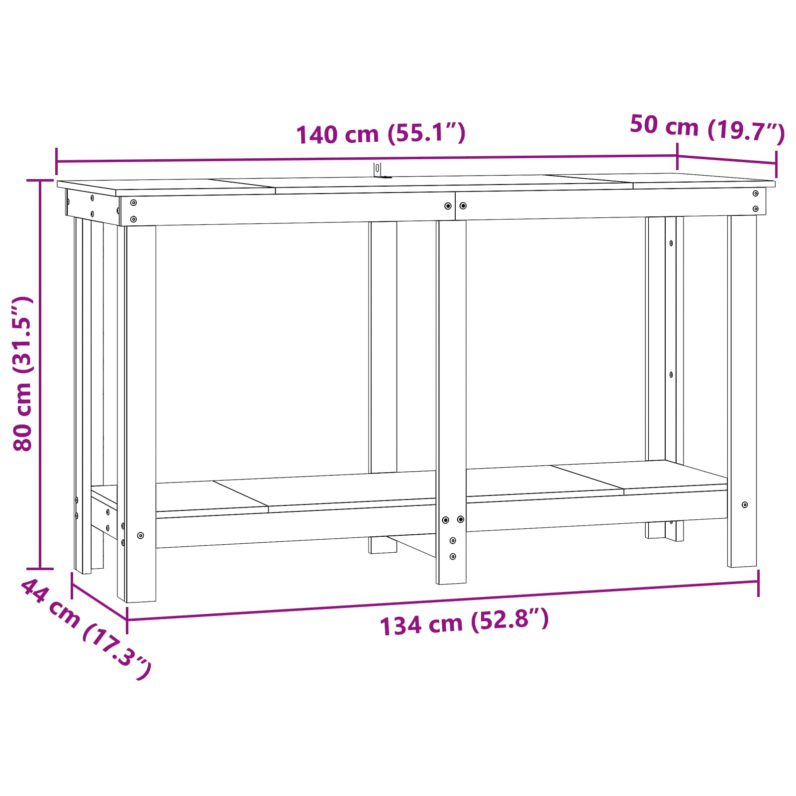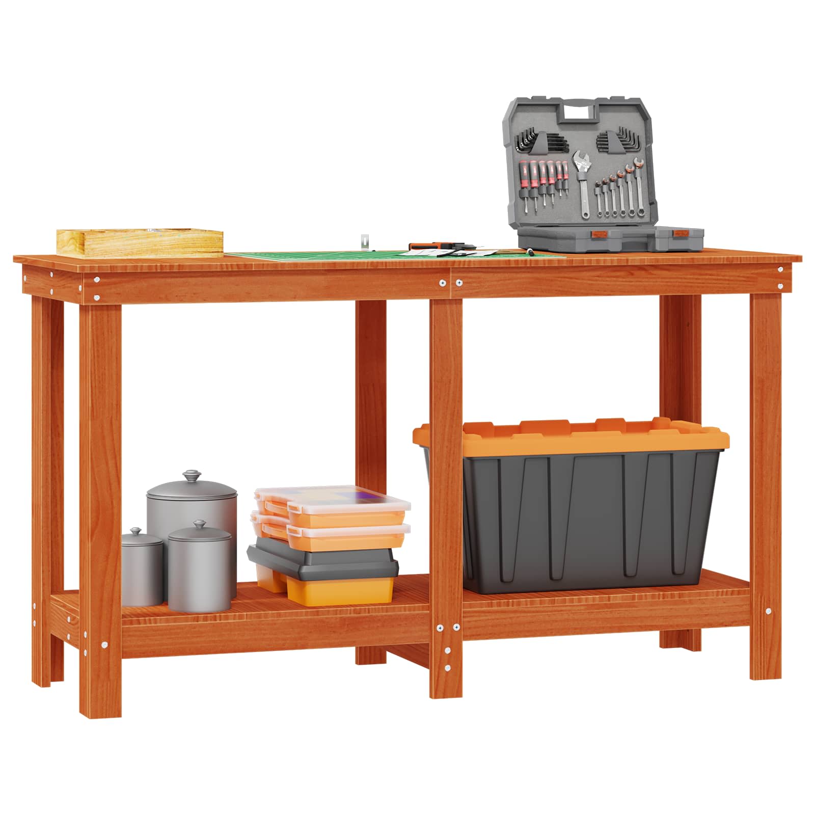 Tämä moderni työpenkki on must have kaikille, jotka haluavat järjestää työtilansa paremmin yhdistämällä käytännöllisyyden ja tyylin. Valmistettu kestävästä mäntypuusta, se tarjoaa luonnollista viehätystä ja tukevan alustan eri tehtäville. Tämä suorakaiteen muotoinen muotoilu on ihanteellinen keittiöihin ja autotalliin, ja se tarjoaa runsaasti työskentelypintaa projekteille ruoanlaitosta tee-se-itse -hommiin. Selkeät linjat ja moderni muotoilu sulautuvat moneen ympäristöön, tuoden lisää käytännöllisyyttä ja ripauksen eleganssia. Tämän penkin ansiosta käyttäjät saavat oikein hyvän tasapainon käytännöllisyyden ja tyylin välillä.