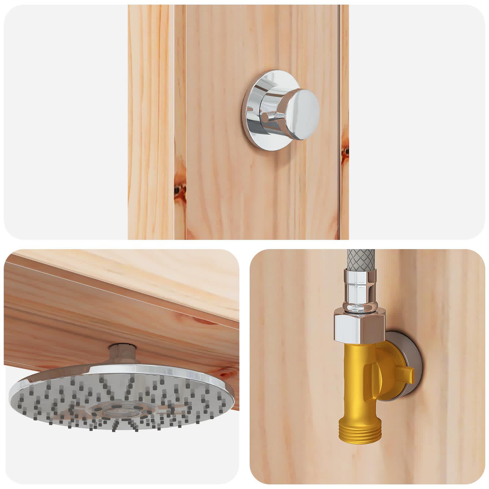 • Tilankäytön tehokkuus: Kompakti muotoilu tekee siitä loistavan pienille alueille, mutta kuitenkin tarpeeksi tilava suihkuamiseen. Tämä huolellinen suunnittelu varmistaa, että voit nauttia ulkosuihkusta ilman puutarhan tai terassin käyttötilan menettämistä.