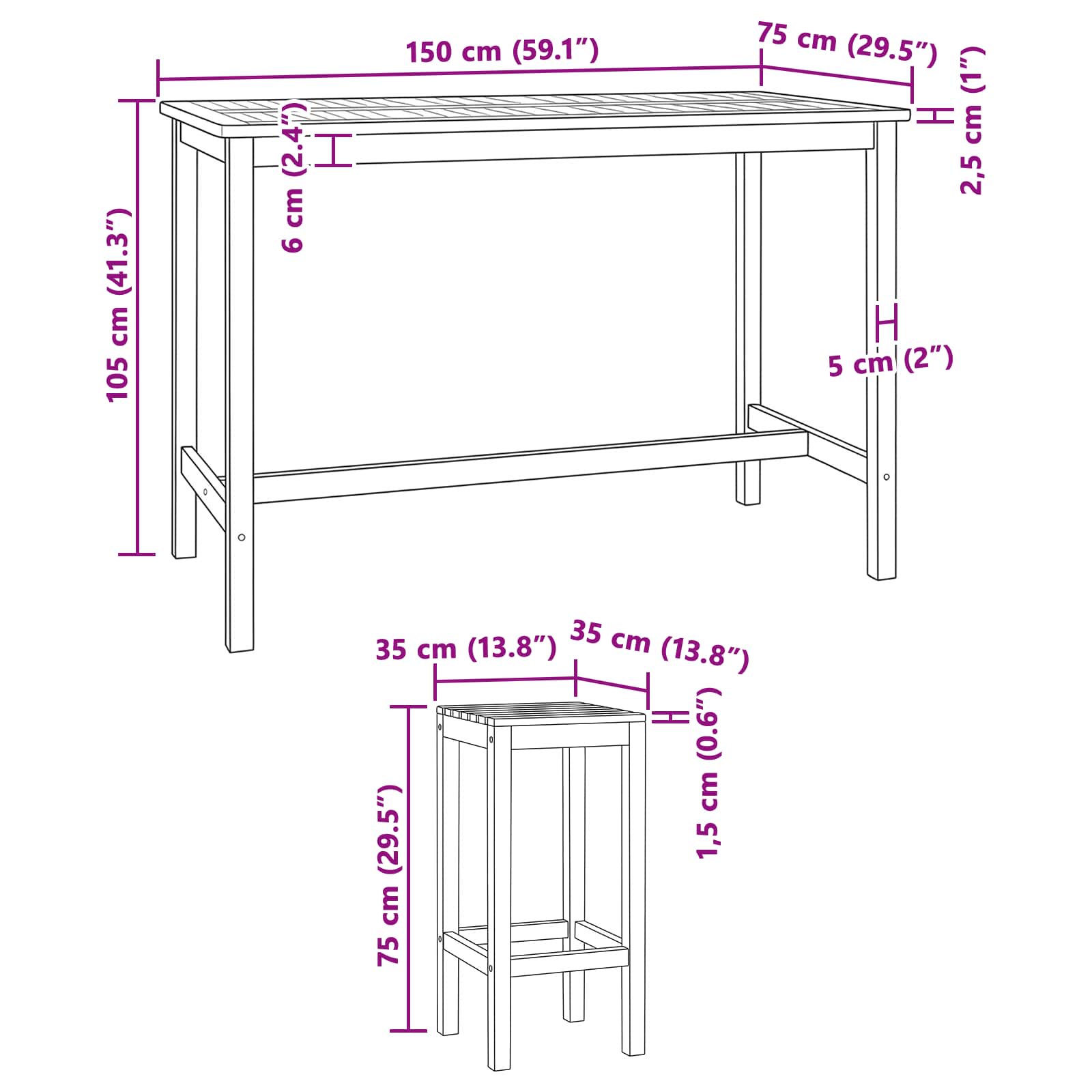 • Baarisetin Suunnittelu: Setti sisältää tilavan baaripöydän ja mukavat tuolit, joissa on ergonomiset jalkatuet. Neliöjalat tarjoavat vakaan perustan pitkille illanvietoille.