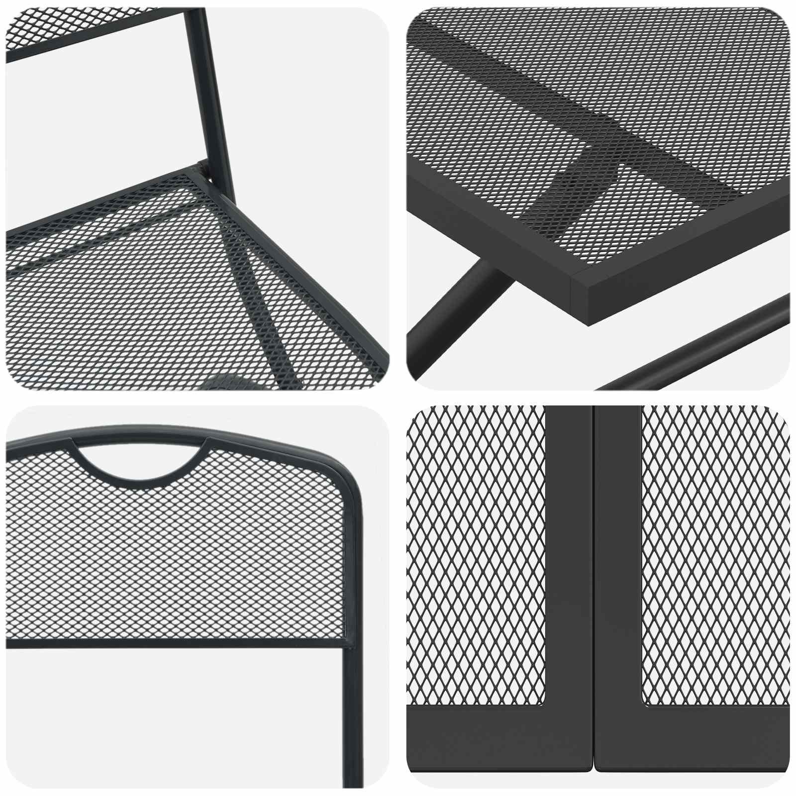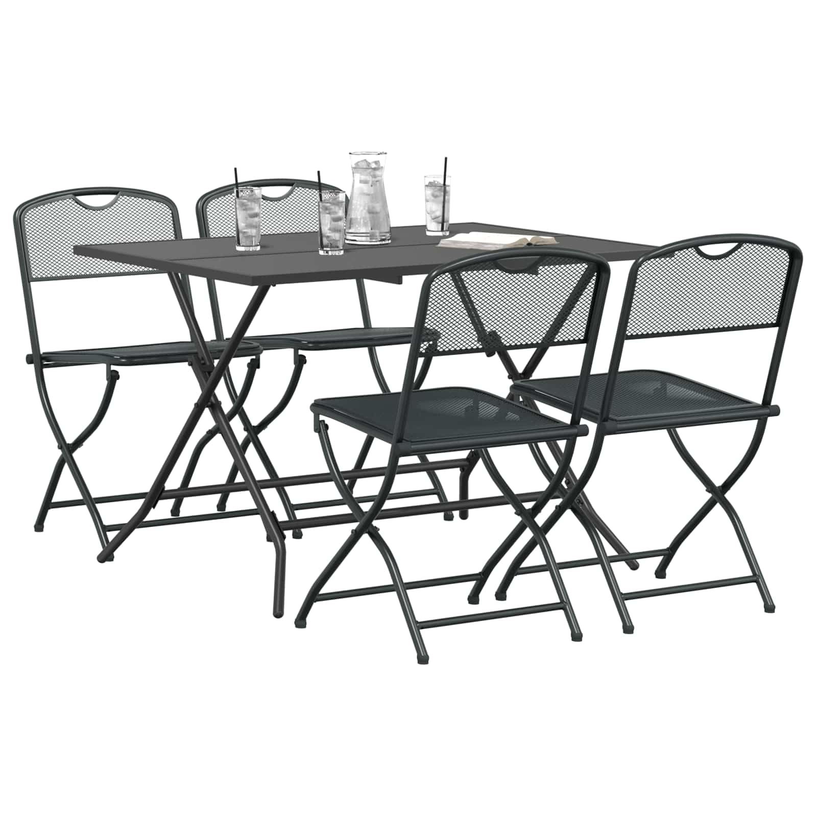 • Sisältää komponentit: Setti sisältää taitettavan pöydän verkkopinnalla, joka parantaa ilmanvaihtoa ja tuo modernia ilmettä. Taitettavat tuolit takaavat, että toiminnallisuus pysyy, ja ne tarjoavat mukavuutta ilman, että tyyli kärsii.