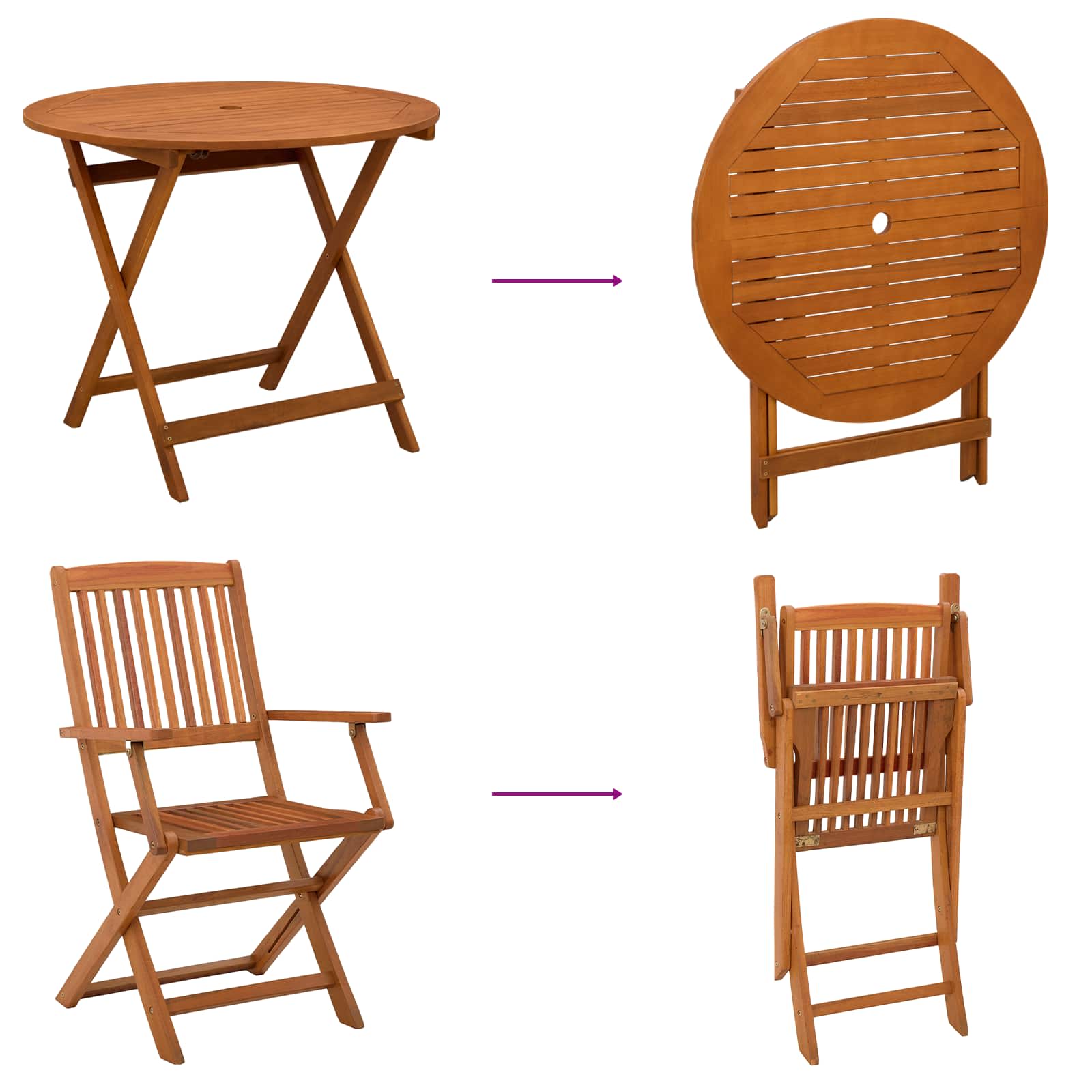 • Kokoontaitettava Muotoilu: Sekä pöytä että tuolit voi taittaa pois, mikä on kätevää varastoinnin kannalta. Tämä tekee sarjasta täydellisen pienille terasseille tai parvekkeille.