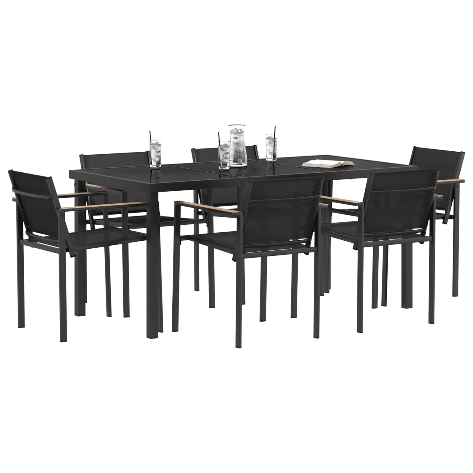 Ulkokalusteet Setti 7 pcs Musta ja antrasiitti 160 x 80 x 73 cm