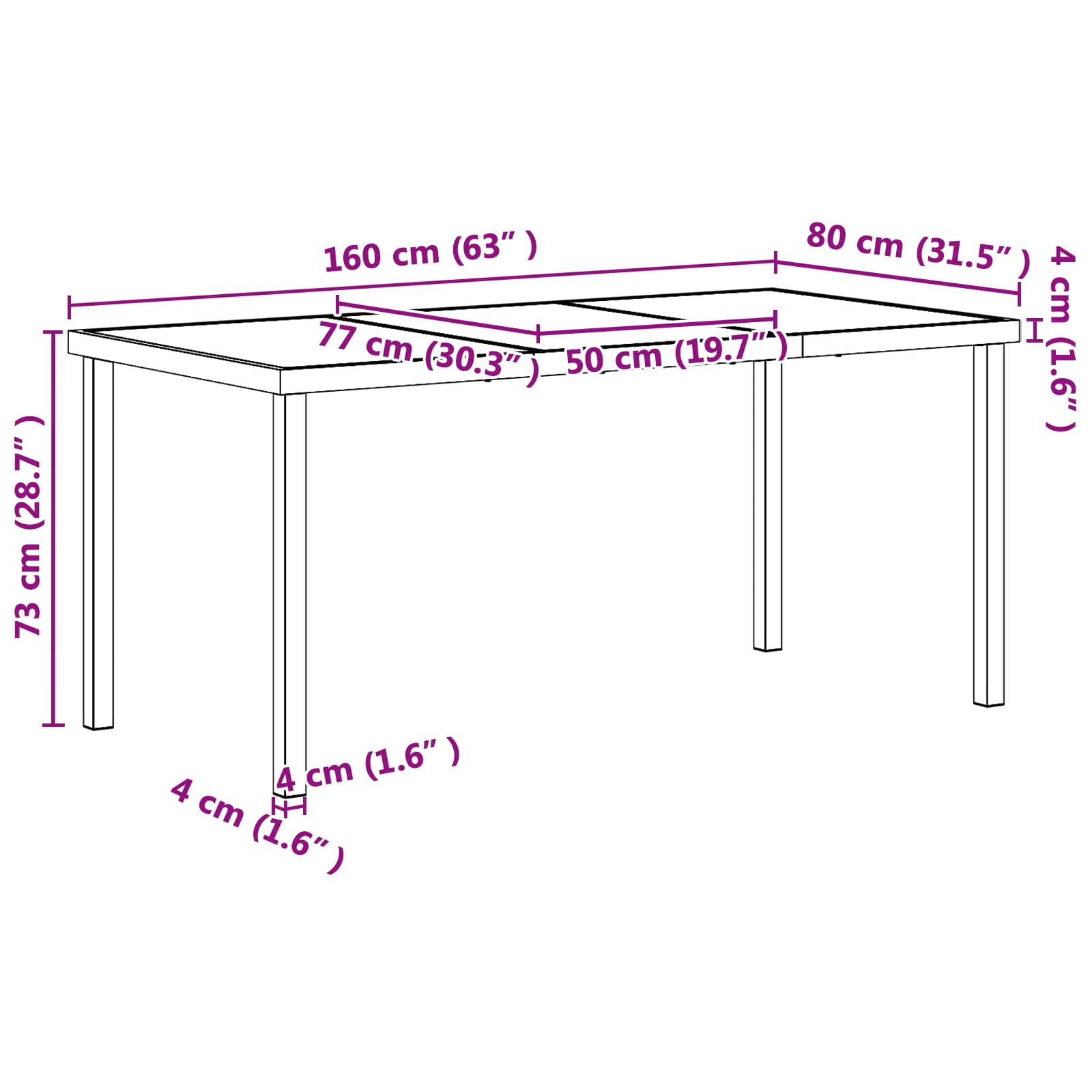 • 1 x pöytä: 160 x 80 x 73 cm(P x L x K)