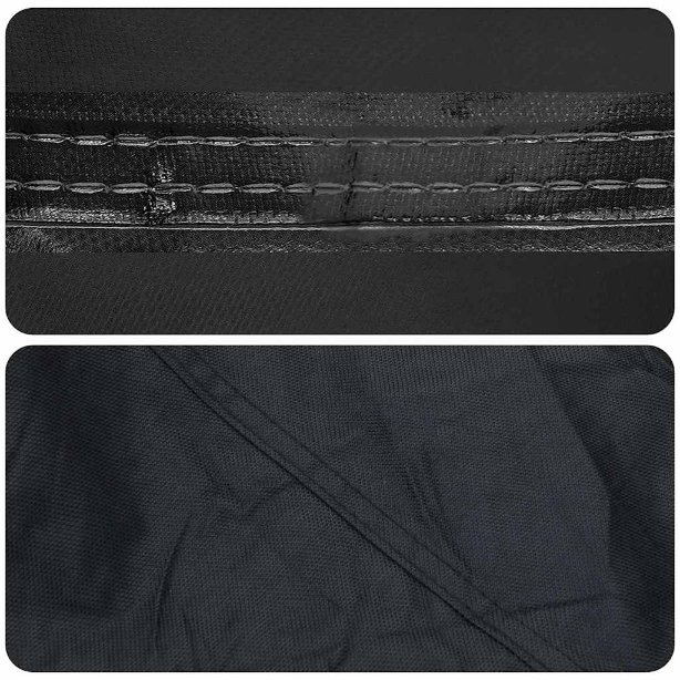 • Kestävä kangasrakennus Tämä kansi on valmistettu kestävästä, UV-kestävästä kankaasta, joka kestää auringon ja säiden rasituksia, varmistaen pitkän käyttöiän. Musta väri tuo tyyliä ilman, että se vie huomiota.