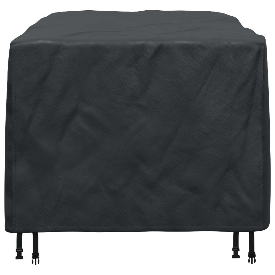• Kestävä kangas: Tämä suojus on valmistettu huippuluokan kankaasta, joka suojaa sateelta, auringolta ja roskilta. Vedenpitävä rakenne estää veden pääsyn sisälle, joten kalusteesi pysyy hyvässä kunnossa pitkään.