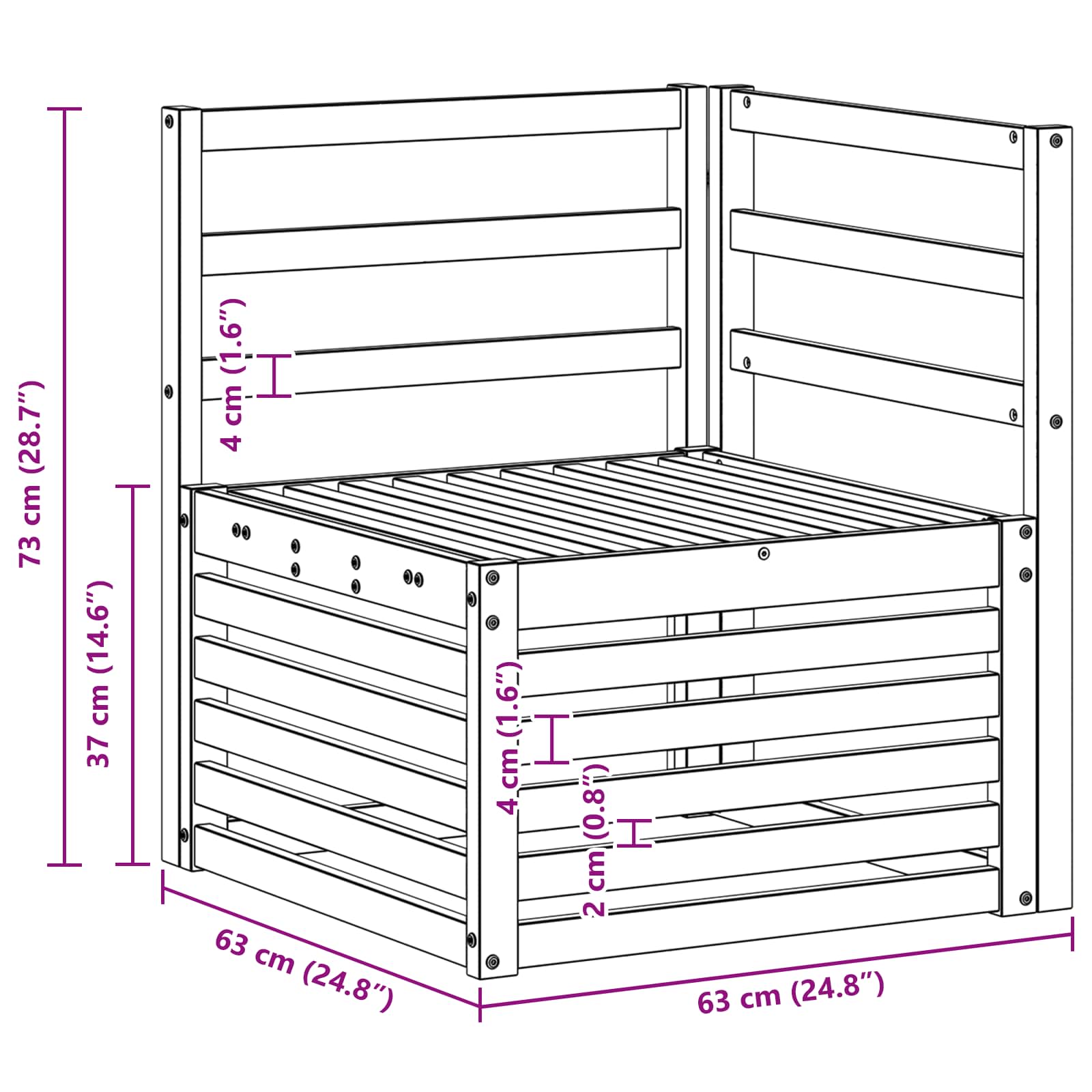 • Yleiset mitat: 63 x 63 x 73 cm (P x L x K)