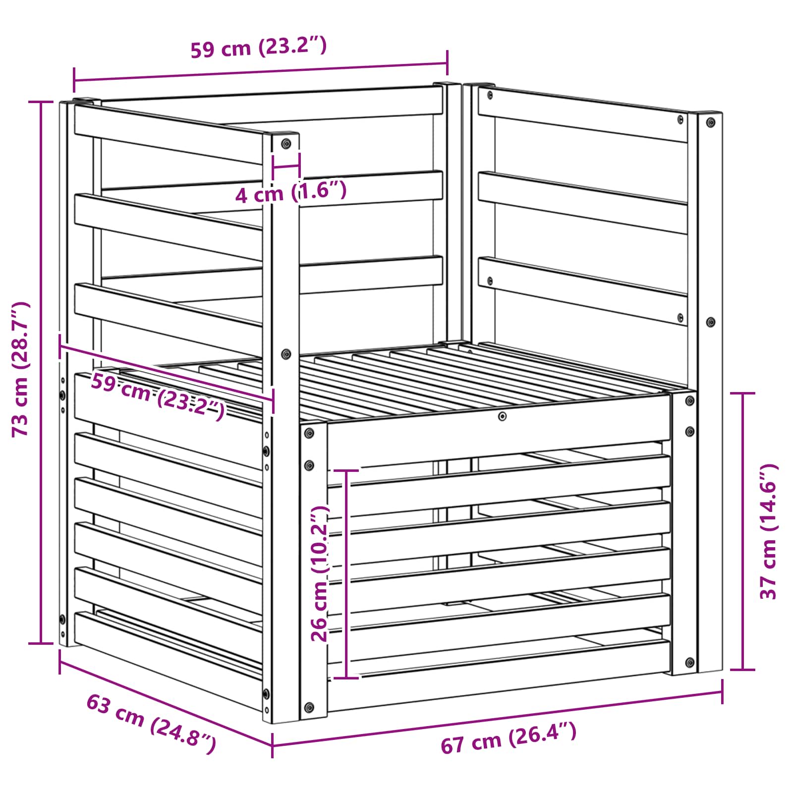 • Säänkestävä muotoilu: Lakattu pinta suojaa auringolta, kevyeltä sateelta ja kaikilta muilta olosuhteilta. Kiillotettu pinta pitää huolta ulkonäöstä ja toimivuudesta, varmistaen pitkän käyttöiän puutarhassasi, terassillasi tai takapihallasi.