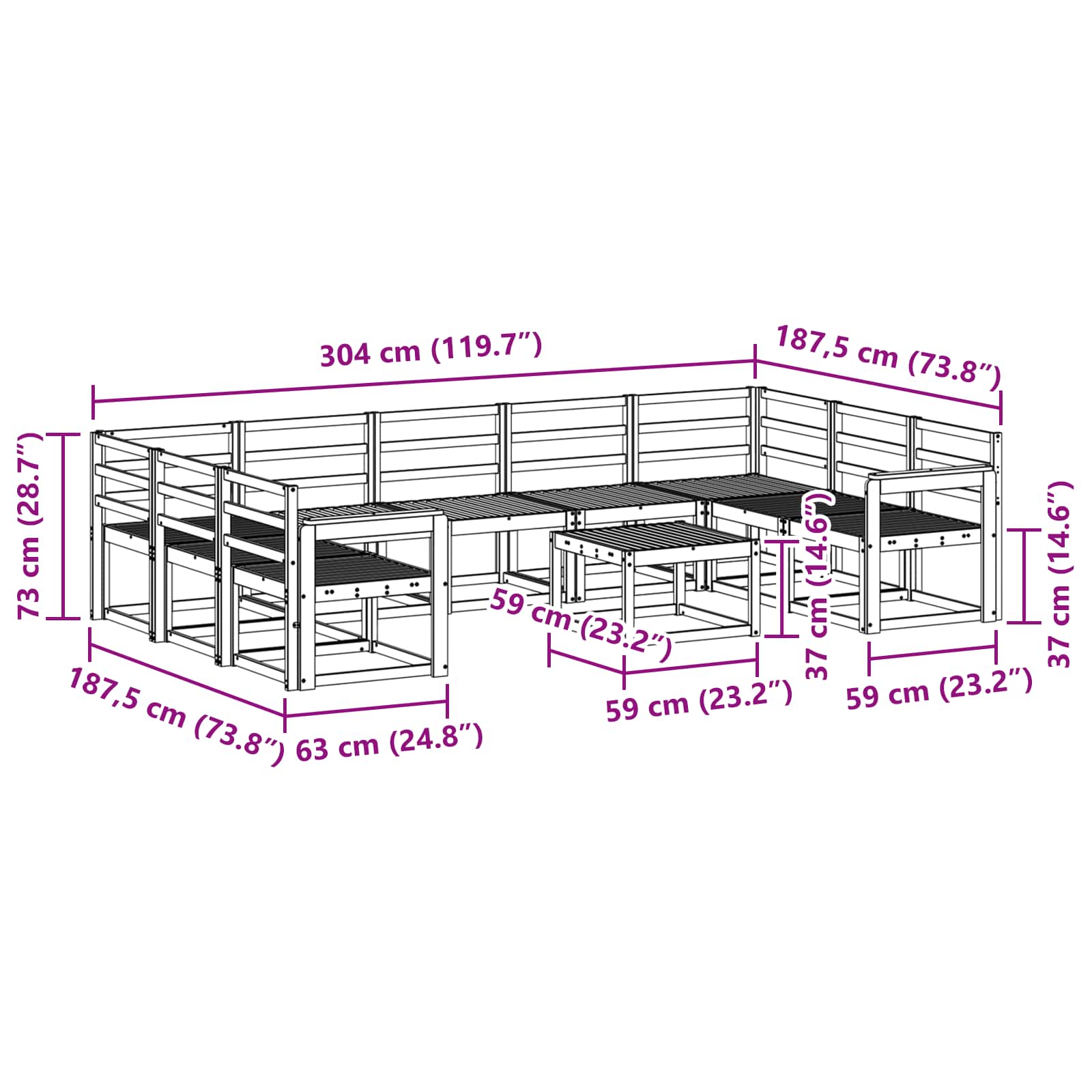 • Täysi akaasiapuu materiaalina Vahvistaa kestävyys ja tyylikkyys, koko sohvasetti on valmistettu täysistä akaasiapuuelementeistä. Tämä materiaali on tunnettu säänkestävyydestään, mikä takaa, että se pysyy lujana ulkoisissa tiloissa. Sen rikkaat ruskeat sävyt nostavat visuaalista tyyliä ja integroituvat saumattomasti eri ulkotilojen esteettisiin ympäristöihin.